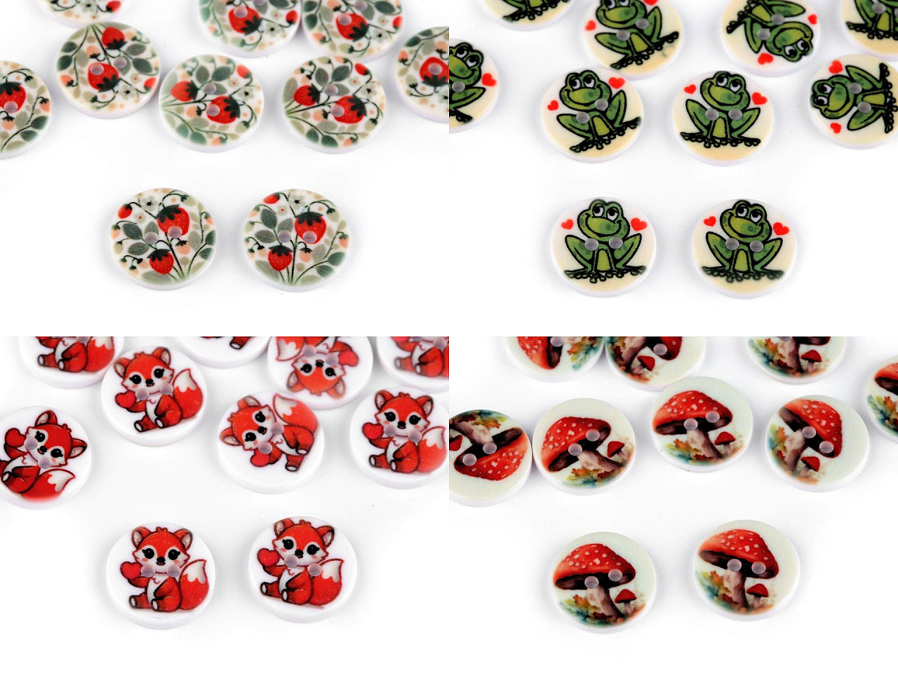 Gombíky s roztomilými obrázkami vyniknú na detských odevoch aj doplnkoch. Môžete ich našiť na svetríky, šaty, bundy, batôžky či tašky. Veľkosť gombíkov nájdete v tejto tabuľke .