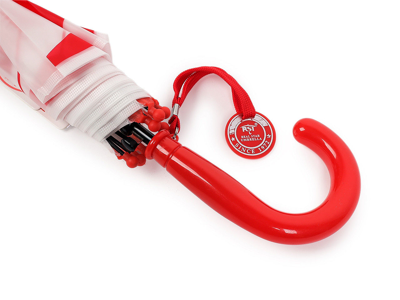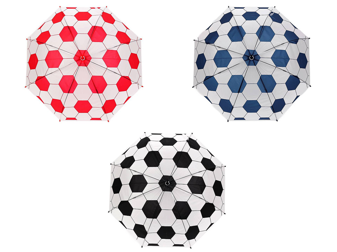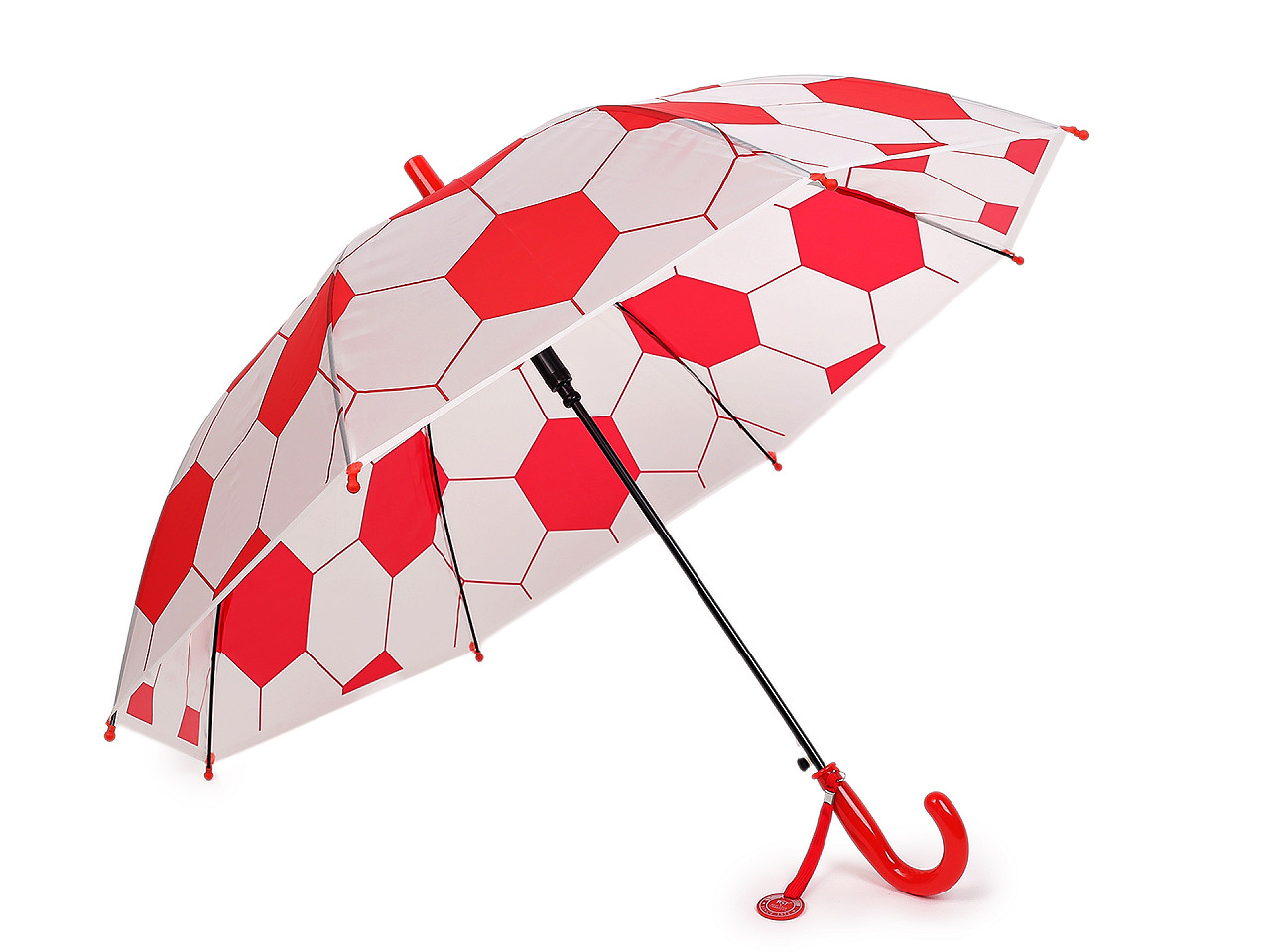 Detský vystreľovací dáždnik s futbalovým motívom poteší hlavne malých futbalistov. Je ideálnym spoločníkom pre malých športových nadšencov. Vďaka svojmu atraktívnemu dizajnu, ktorý pripomína futbalovú loptu, si ju deti okamžite obľúbia. Poťah je priesvitný, na rukoväti má dáždnik visačku, na ktorú môžete napísať meno dieťaťa. Má klasickú tyč zakončenú pevnou rukoväťou. Konštrukcia dáždnika je z pružných lamiel a tvorí osem polí. Hĺbka dáždnika je 24 cm.
