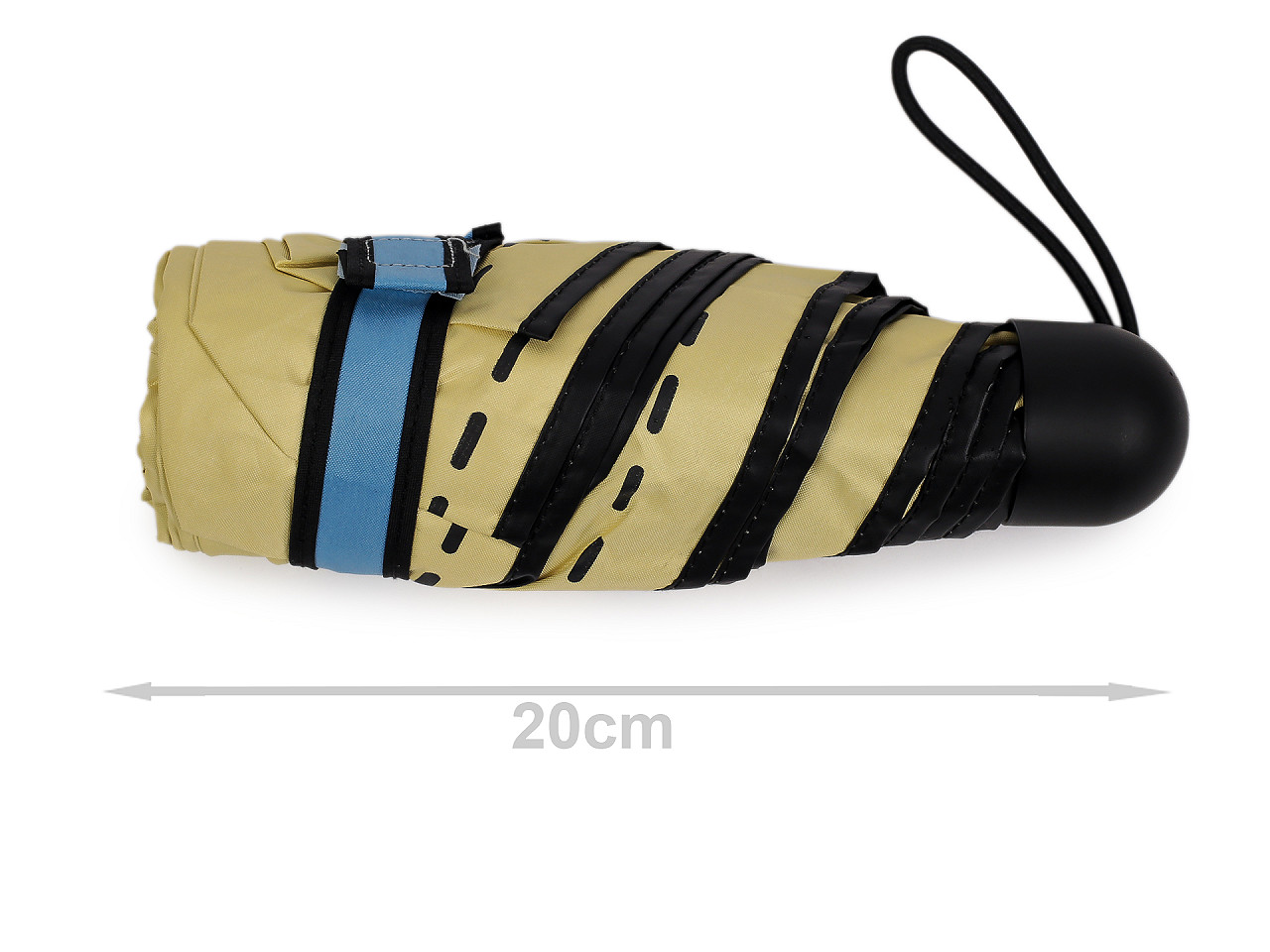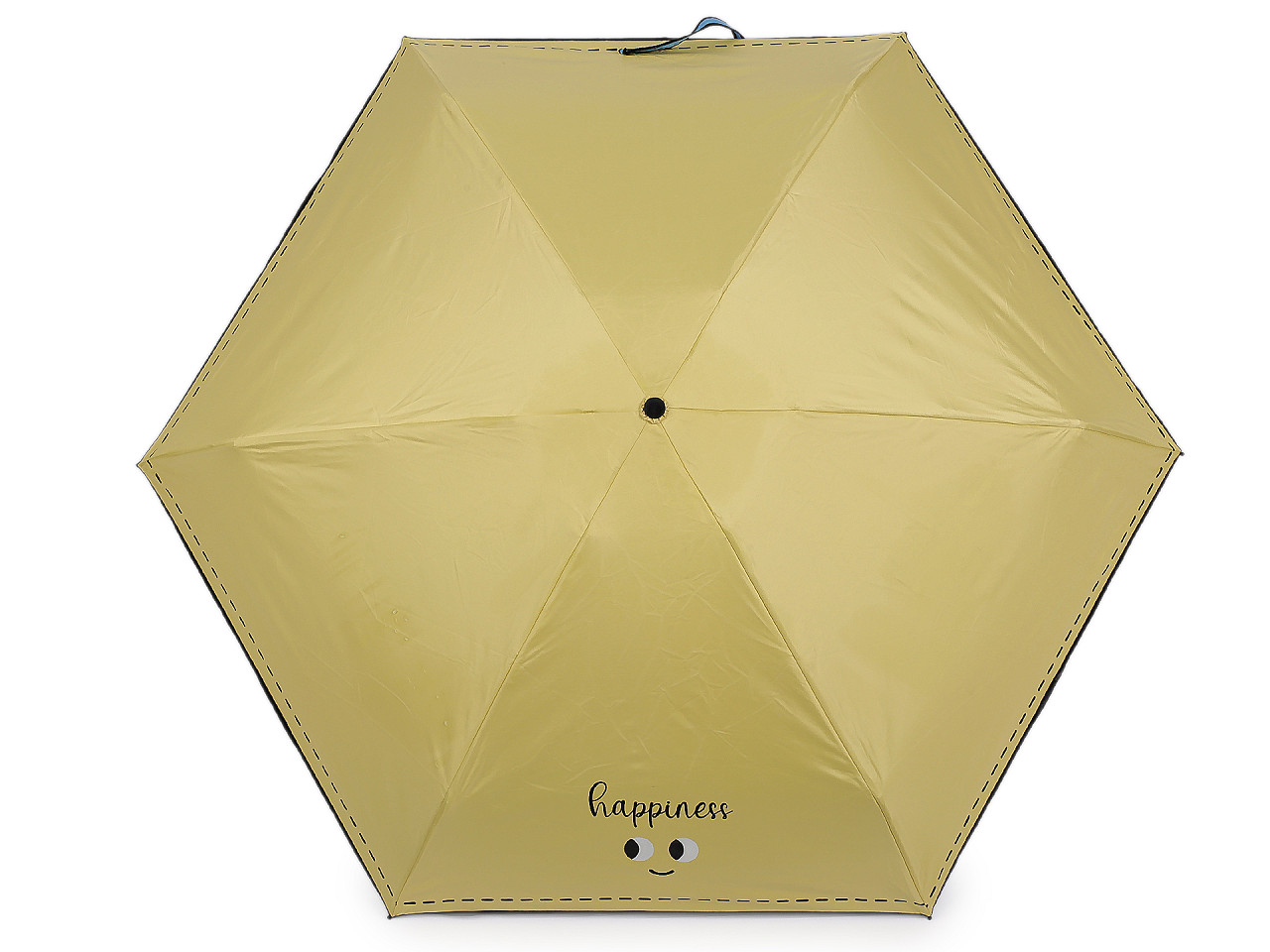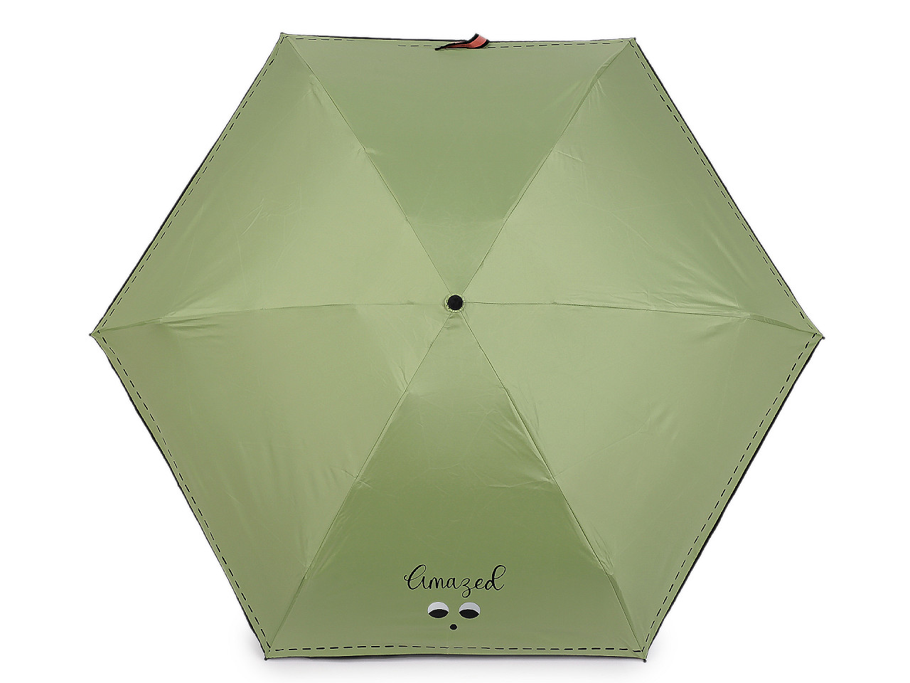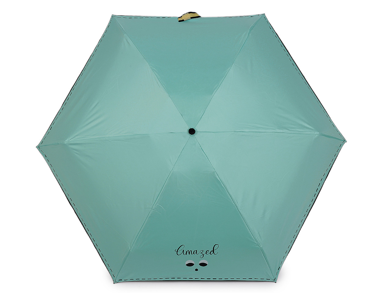 Skladací mini dáždnik je vďaka malej veľkosti ľahký a skladný , pohodlne sa vám zmestí do kabelky. Na poťahu má výraz tváre s nápisom, ktorým dáte okoliu najavo, ako sa cítite. Potlačou je naznačené aj štepovanie poťahu na okraji. Iste oceníte i jeho praktické puzdro s uchami na nosenie v ruke , v tvare taštičky. Taštička má rovnakú potlač ako je na dáždniku. Konštrukcia je tvorená šiestimi poľami. Rukoväť dáždnika je plastová a opatrená pútkom. UV filter vás ochráni pred slnečným žiarením, dolná strana poťahu je čierna. Zapínanie je klasické na suchý zips. Hĺbka dáždnika je 18 cm. Celková dĺžka je 52 cm. Dĺžka zloženého dáždnika je 20 cm.