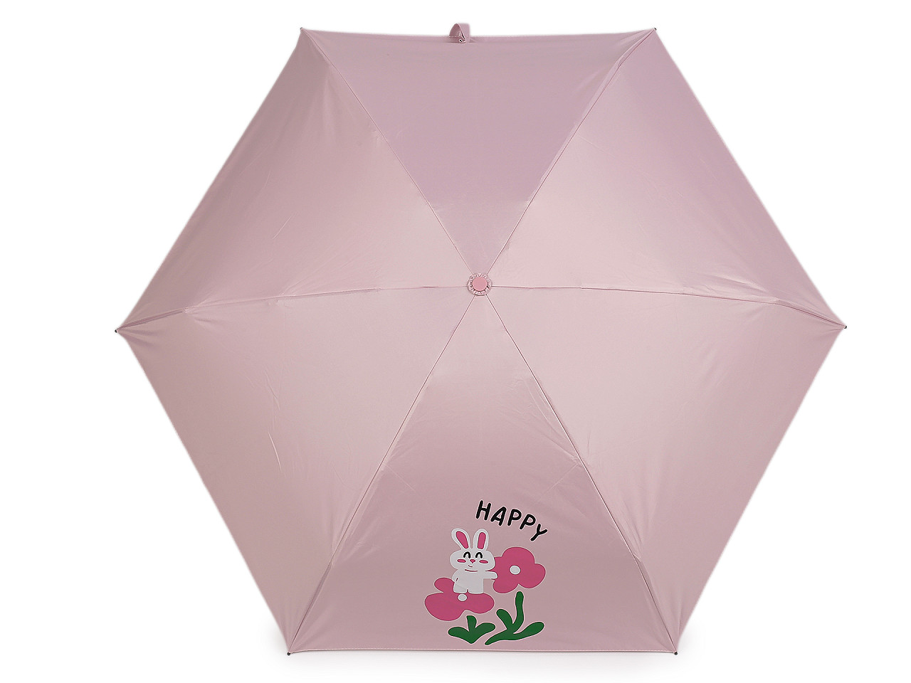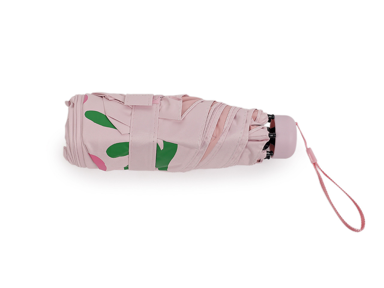 Skladací mini dáždnik je ideálny na každodenné použitie v meste, na cestách alebo pri vonkajších aktivitách. Dizajn s obrázkom kvetov a zvieratka a jeho praktické vlastnosti z neho robia skvelého spoločníka pre každú príležitosť. Konštrukcia je tvorená 6 poľami. Rukoväť dáždnika je plastová s pútkom. Súčasťou dáždnika je ochranný obal. Hĺbka dáždnika je 18 cm. Celková dĺžka je 51 cm. Dĺžka zloženého dáždnika je 19 cm.