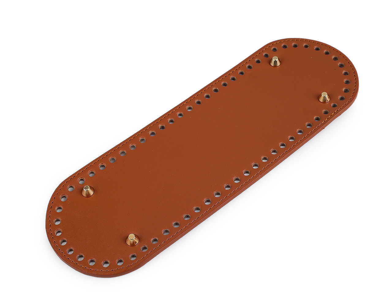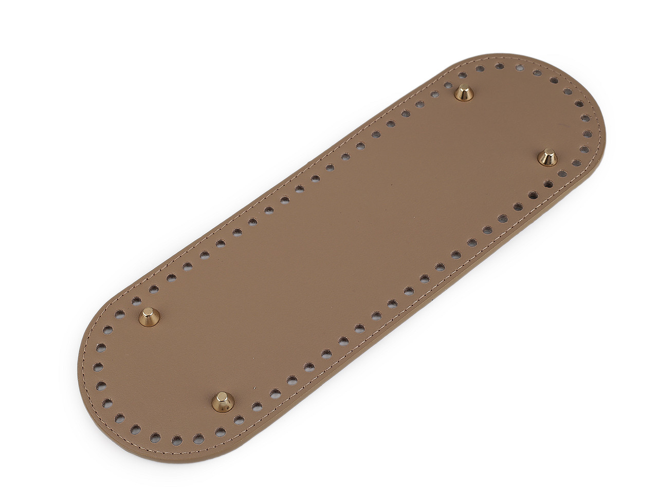 Dno z eko kože s nôžkami využijete na výrobu kabeliek, tašiek alebo batohov. Má v sebe malé otvory (Ø5 mm) pre ľahšiu prácu a je prešité. Je vhodné na háčkované aj šité výrobky. Spodnú stranu dna chránia kovové nožičky , ktoré zároveň dadajú kabelke aj stabilitu. Výška nožičiek je 6 mm. Dno má 66 otvorov. Podrobný fotonávod na výrobu kabelky nájdete v našich návodoch. Určite stojí za pozrenie.