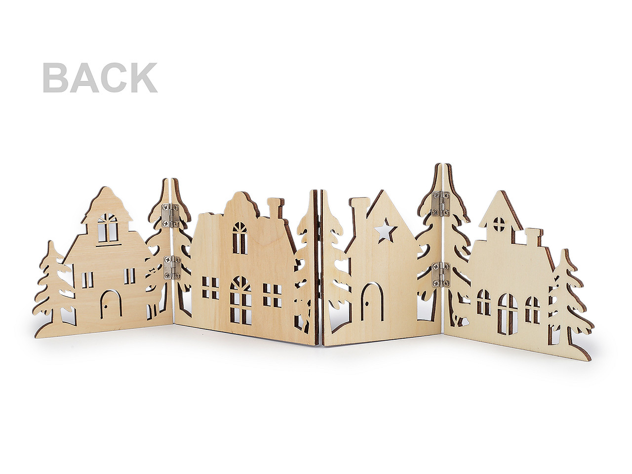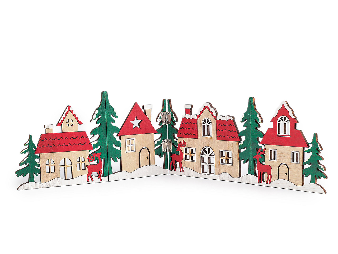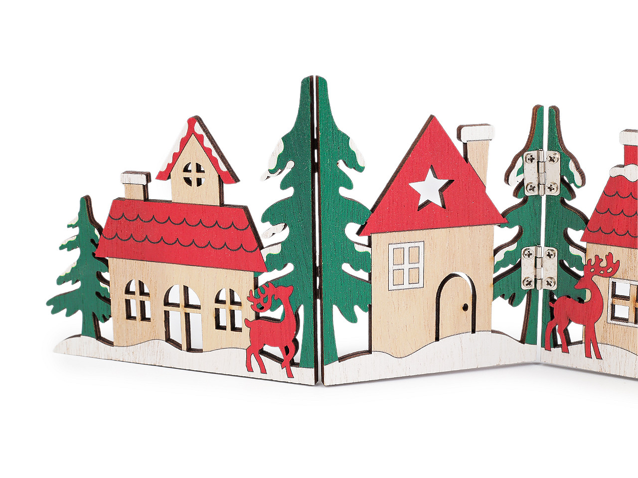 Drevené skladacie domčeky vyniknú ako štýlová zimná dekorácia. Môžete ich umiestniť na krbovú rímsu, okenný parapet, poličku alebo ich dať ako dominantu sviatočnej tabule. Vyniknú tiež zakomponované vo vianočnom aranžmáne. Sú precízne vyrezané laserom a majú pôsobivo spracované detaily v podobe maľby.