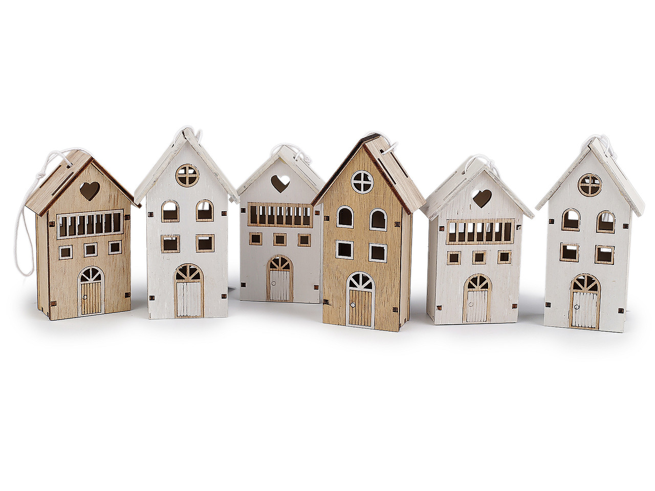Malé drevené domčeky môžete vďaka pútku zavesiť na stromček, dekoračné vence, vetvičky vo váze a pod. Sú vhodné na celoročné aranžovanie. Vďaka svojmu decentnému dizajnu skvele zapadnú do rôznych štýlov interiéru. Domčeky sú obojstranné a v dvoch veľkostiach.