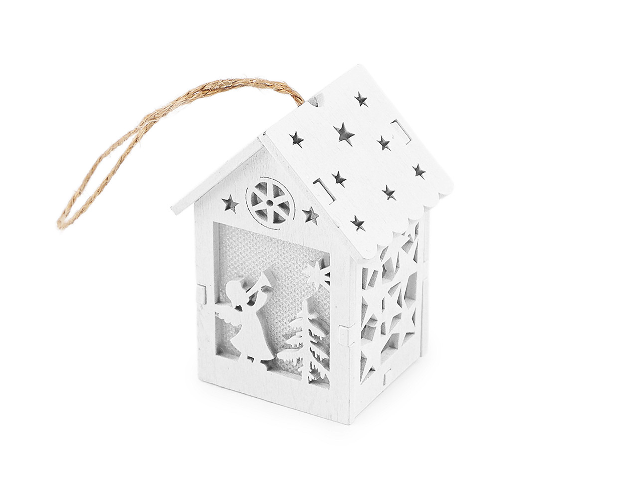 Svietiaci drevený domček s precízne spracovanými výrezmi môžete vďaka pútku zavesiť na stromček alebo dekoračné vence. Vynikne aj ako ozdoba sviatočného stola. Svieti príjemným teplým svetlom. Batérie (3 ks AG10) sú súčasťou balenia.