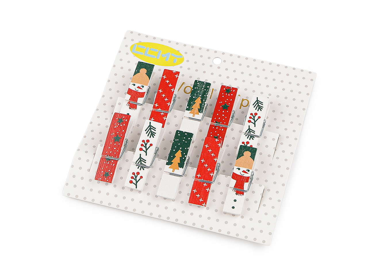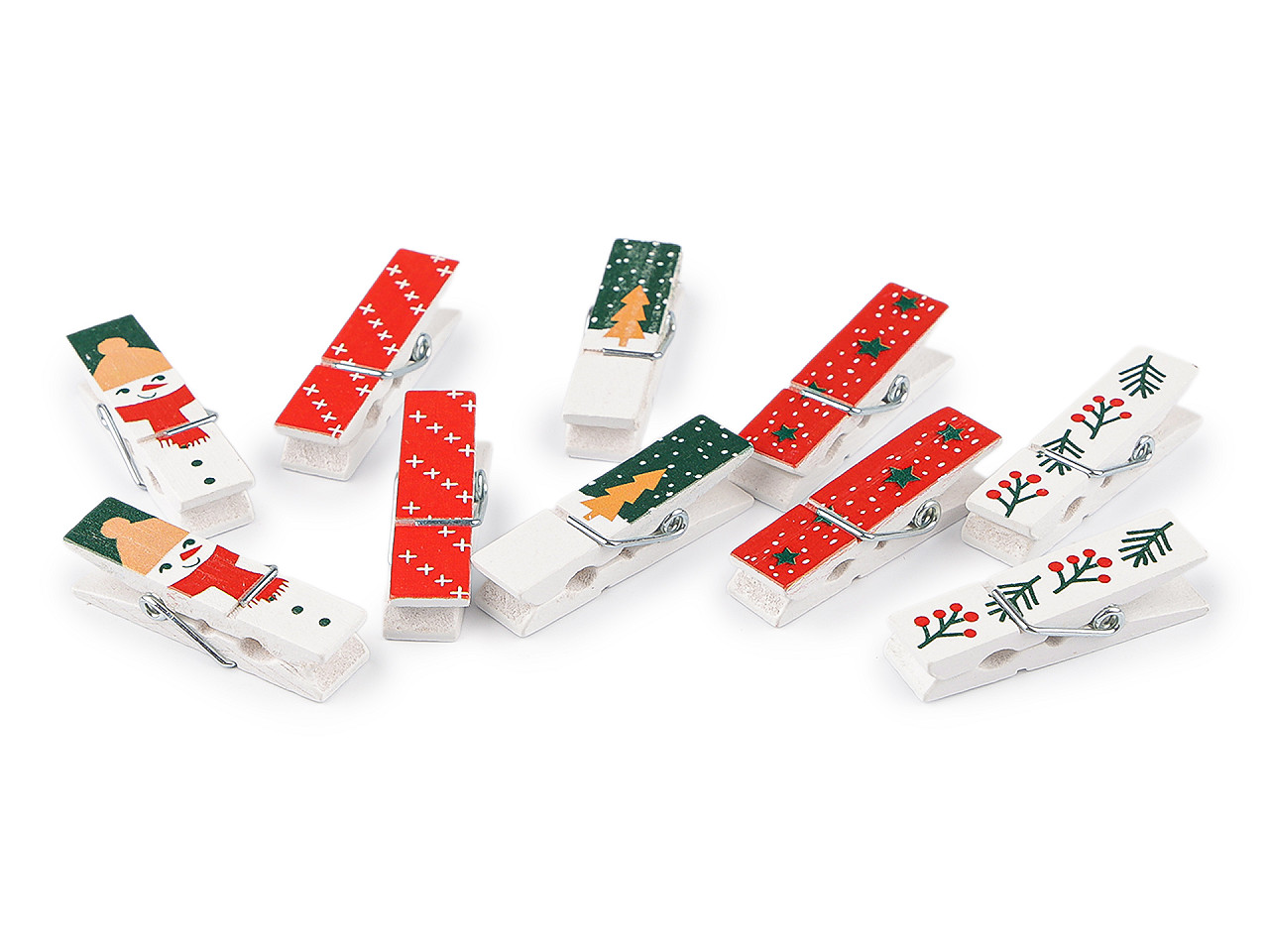 Drevené štipce s vianočnou potlačou vám pomôžu štýlovo ozdobiť darčeky, darčekové tašky alebo kvetináče a kvetinové väzby. Sú vhodné aj na výrobu adventného kalendára alebo na pripevnenie fotografií a obrázkov na povrázok. Potlač je jednostranná.