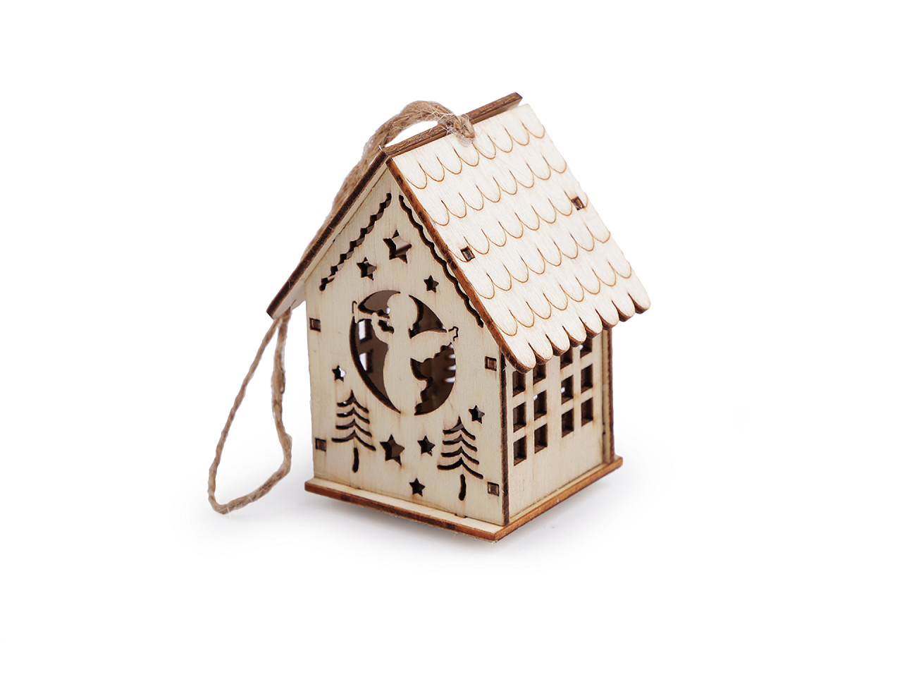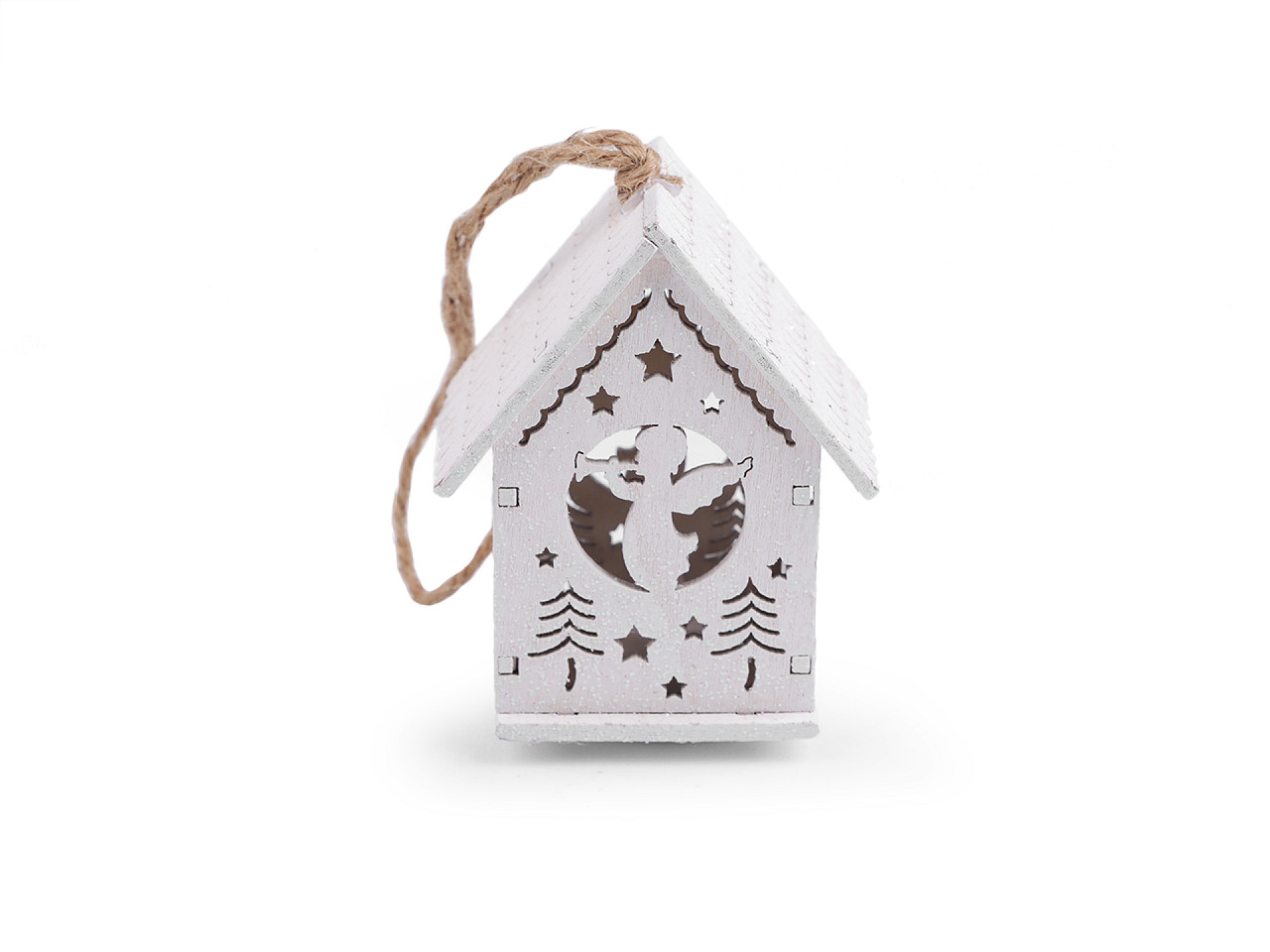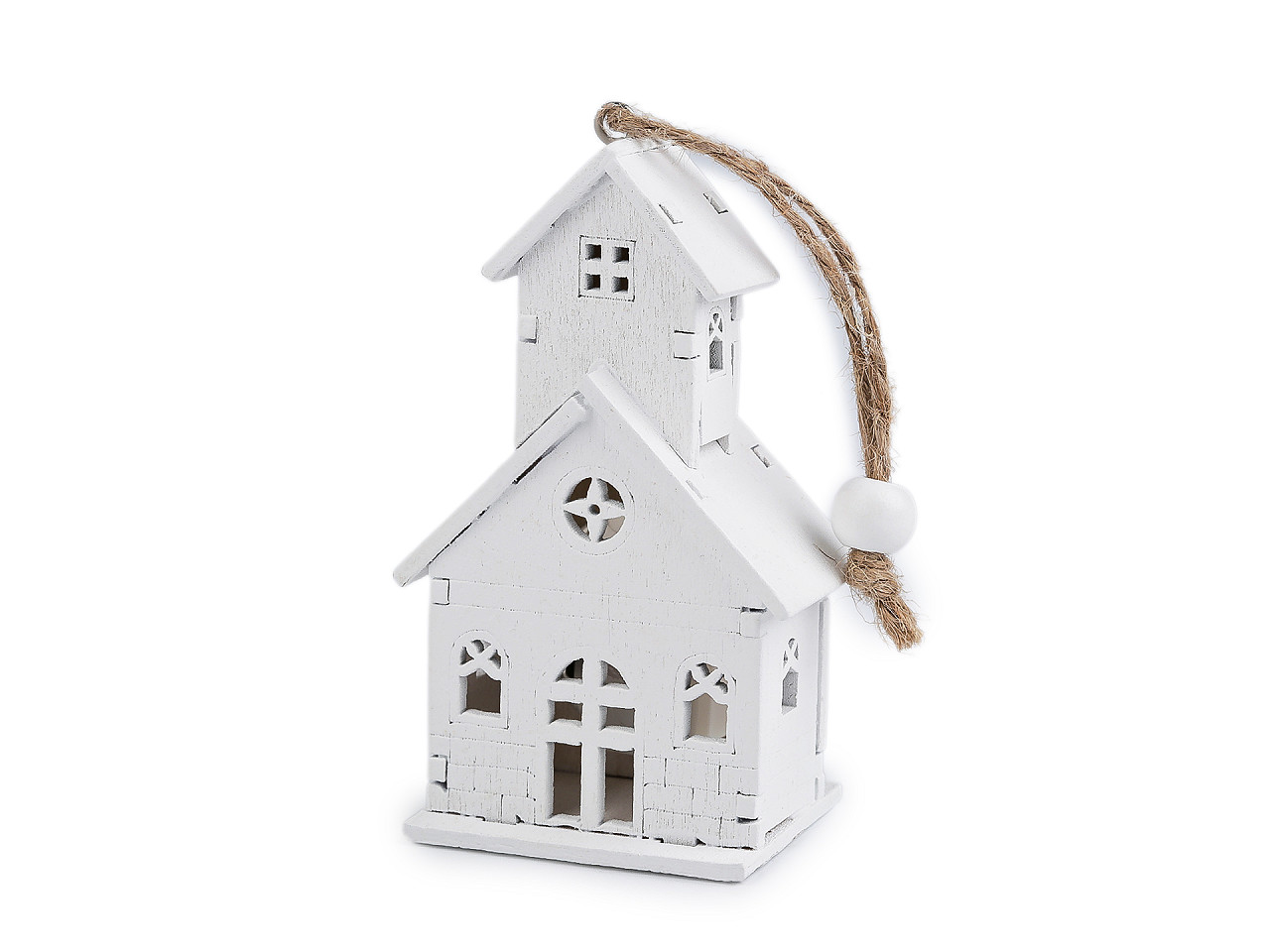 Svietiaci drevený kostol s precízne spracovanými výrezmi môžete vďaka pútku zavesiť na stromček alebo dekoračné vence. Svieti teplým svetlom. Batérie LR41 (3 ks) sú súčasťou balenia.