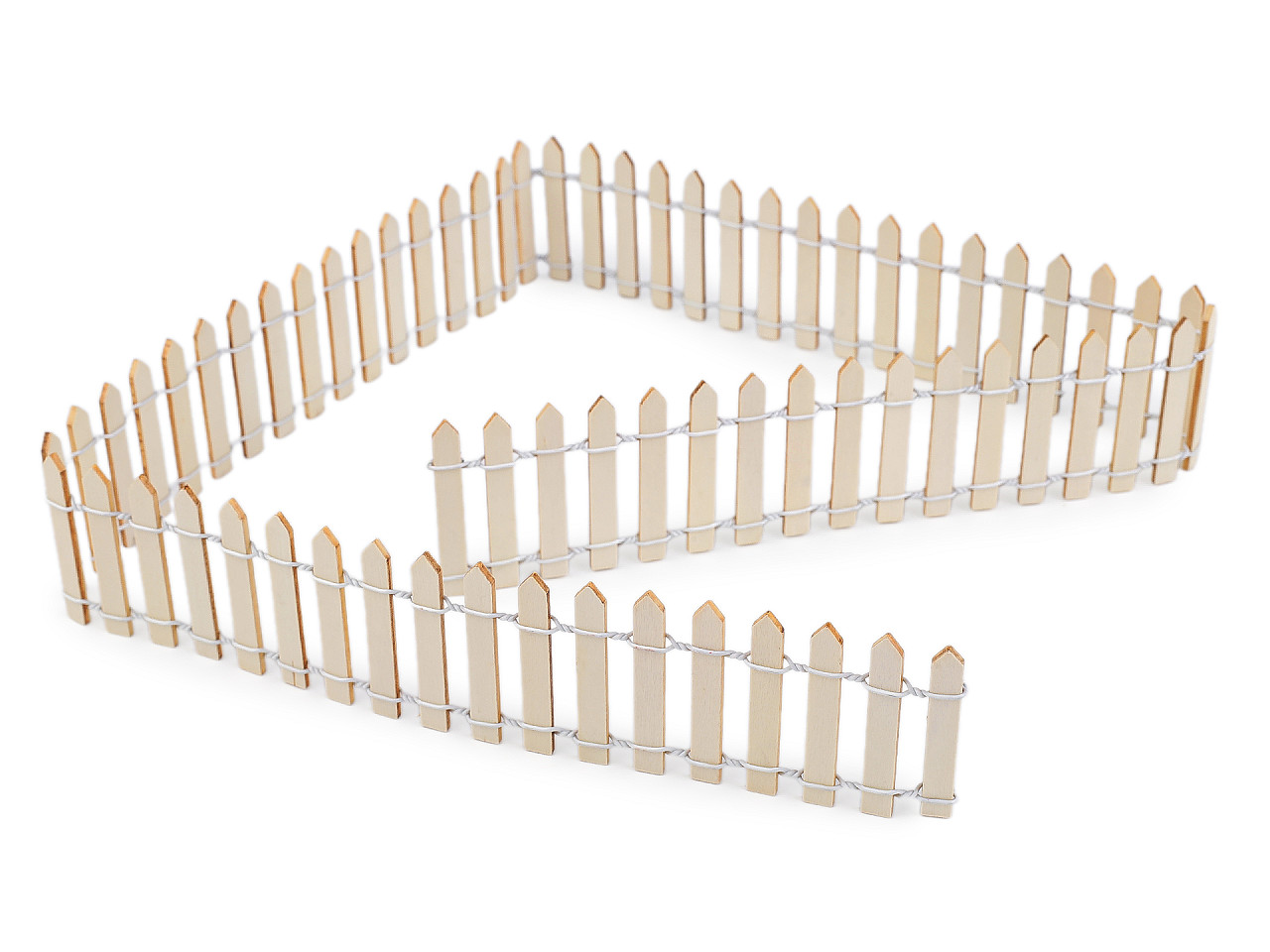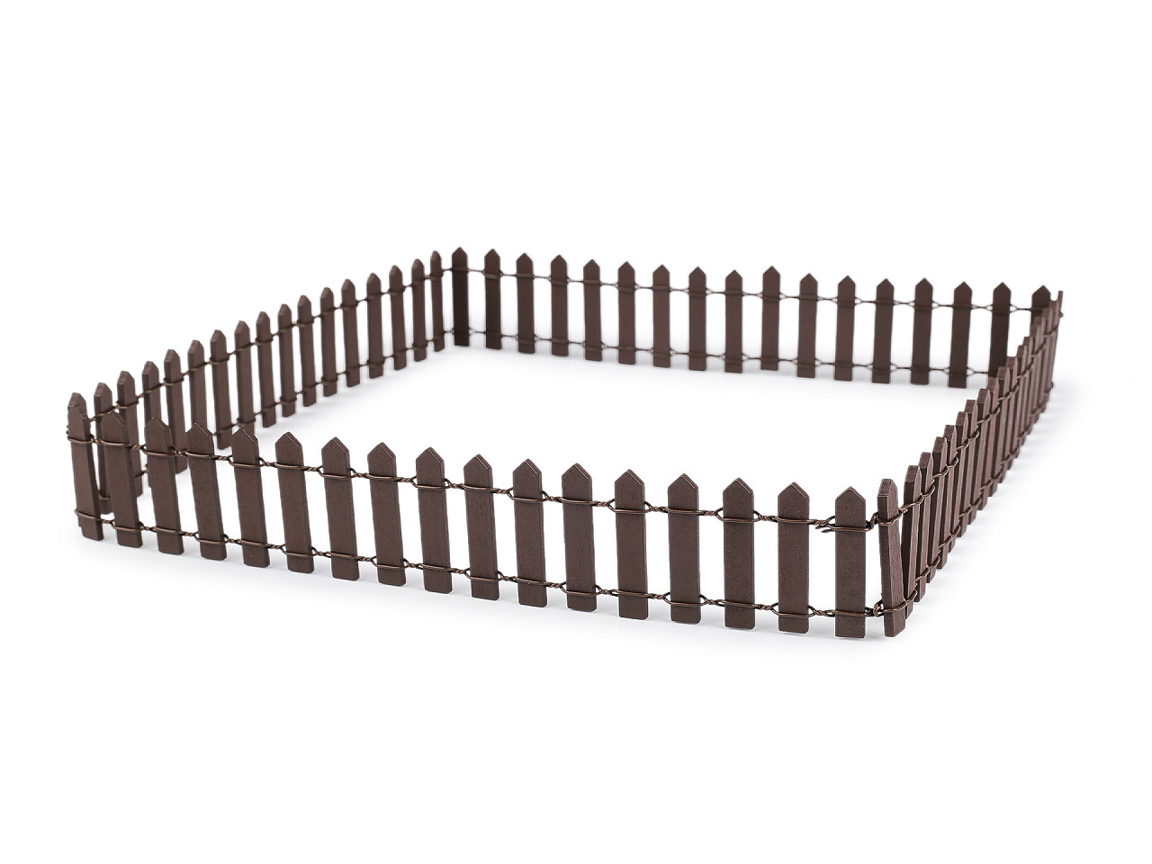 Drevený plot využijete na tvorenie dekoračných mini dediniek, zoologických záhrad a na aranžovanie. Latky sú spojené kovovým drôtom, ktorý umožňuje ľahkú tvarovateľnosť plotu.