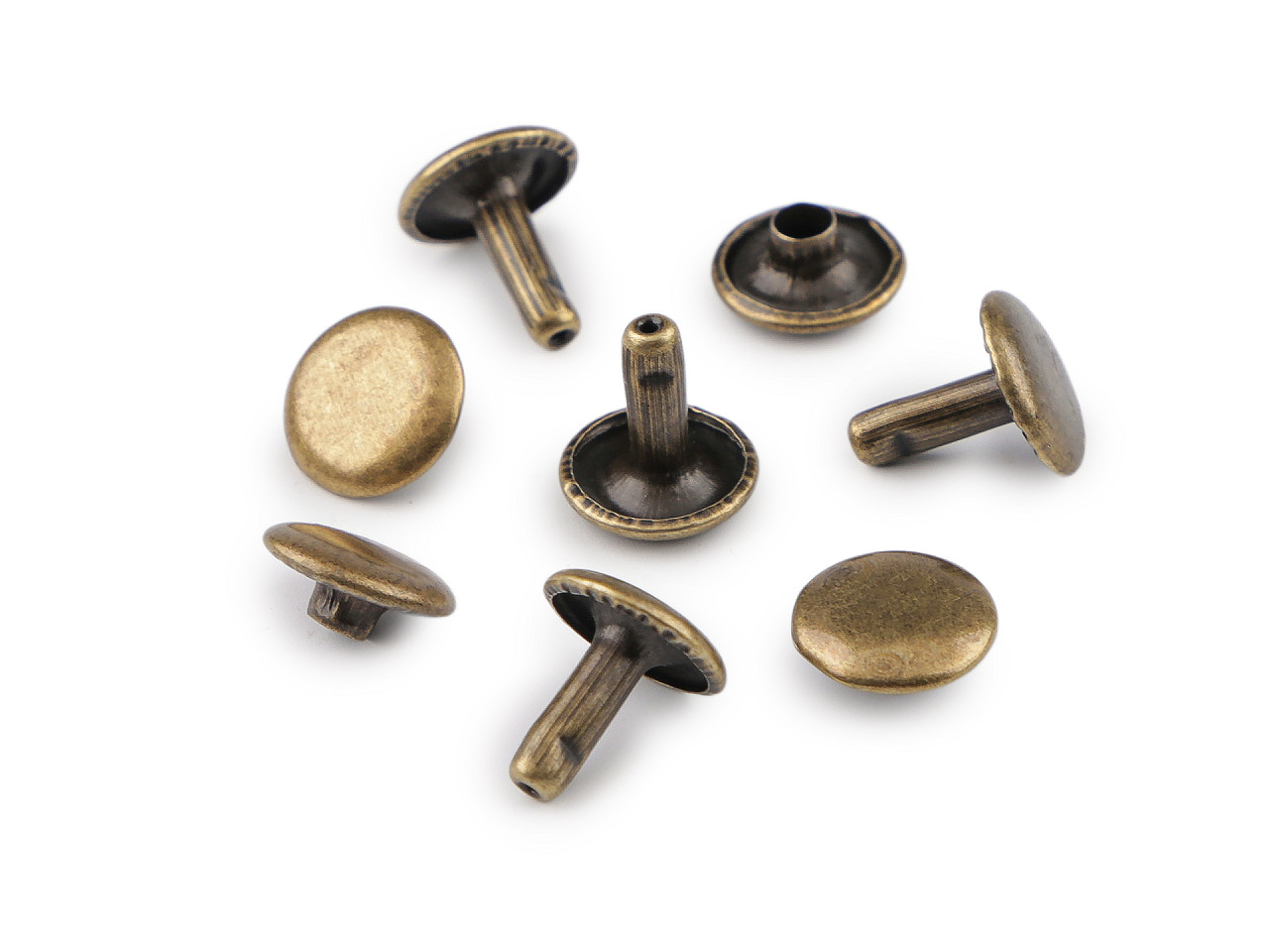 Obojstranný kovový nit sa skladá z dvoch častí. Na aplikáciu je potrebný piston a lis, ktorý nájdete pod kódom 070241 alebo 790770. Nity využijete na výrobu kabeliek, opaskov, peňaženiek a pod. Neslúžia iba ako ozdoba, ale jedná sa o nity, ktorými môžete upevniť vrstvy materiálu k sebe. Priemer hrotu nitu je 3 mm.