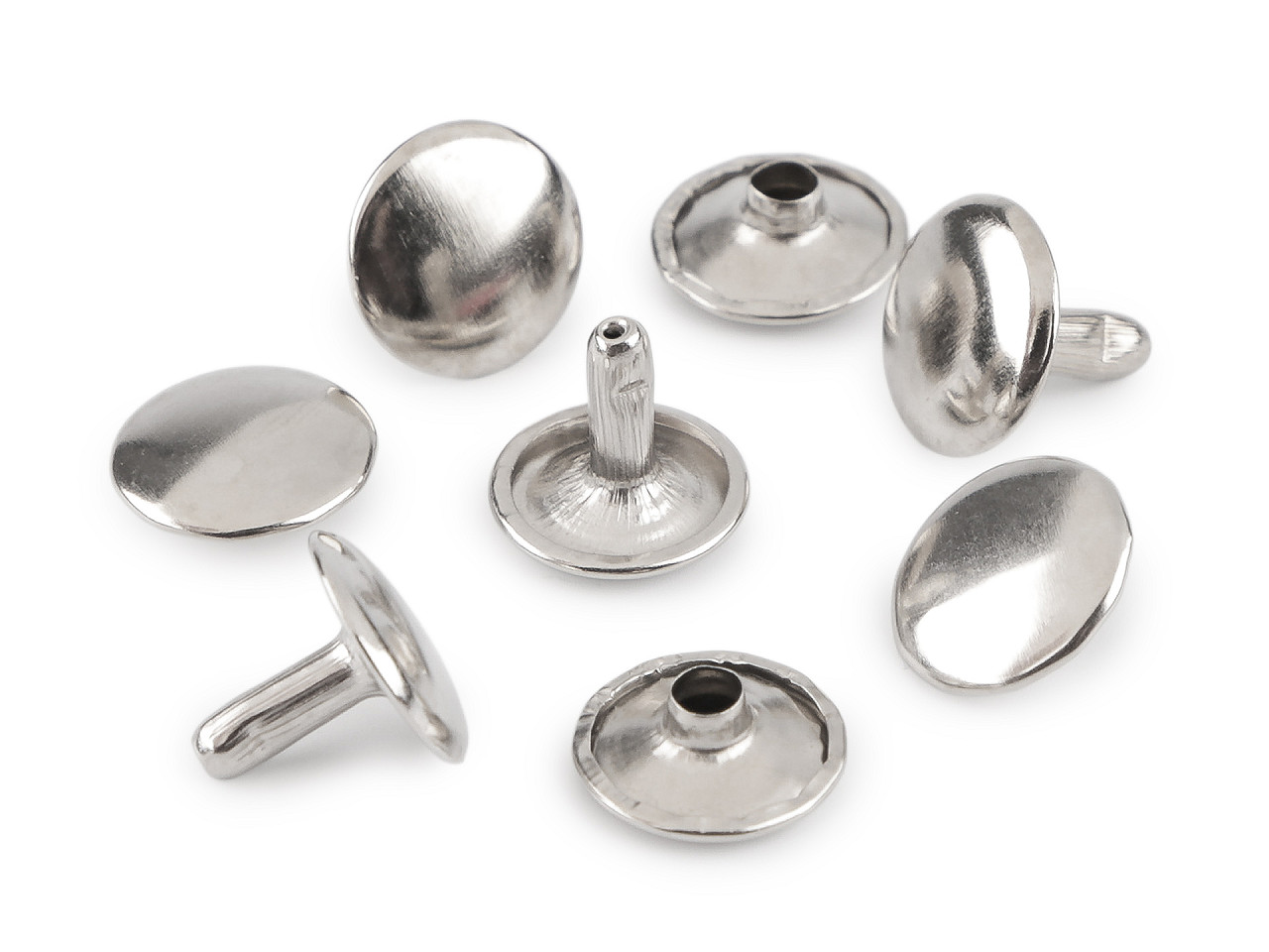 Obojstranný kovový nit sa skladá z dvoch častí. Na jeho aplikáciu je potrebný pistón a lis, ktorý nájdete pod kódom 070241 alebo 790770. Nity využijete na výrobu kabeliek, opaskov, peňaženiek a pod. Neslúžia iba ako ozdoba, ale jedná sa o nity, ktorými môžete upevniť vrstvy materiálu k sebe. Priemer hrotu nitu je 3 mm.
