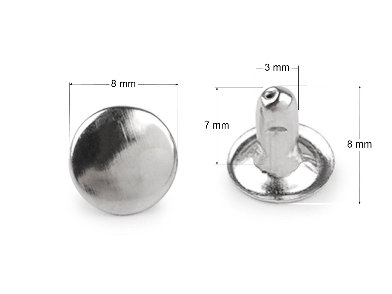 Kovový nit sa skladá z dvoch častí. Na jeho aplikáciu je potrebný pistón, ktorý nájdete pod kódom 630532 a lis, ktorý nájdete pod kódom 070241 alebo 790770. Nity môžete použiť na výrobu kabeliek, opaskov, peňaženiek atď. Neslúži iba ako ozdoba, ale jedná sa o nity, ktorými upevníte vrstvy materiálu k sebe.