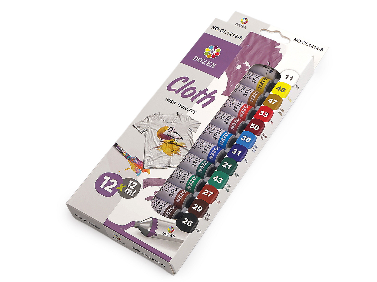 Sada farieb na textil v balení po 12 ks je ideálnym riešením pre všetkých kreatívnych jedincov, ktorí chcú svojim textilným výrobkom dodať osobitosť a jedinečnosť. Sú netoxické, v balení nájdete 12 farebných odtieňov v uzatváracích tubách s obsahom 12 ml. Využijete ich na ozdobenie trička, mikiny, tašky, tenisiek alebo bytových doplnkov ako sú obrusy, vankúše, závesy a pod. Dá sa s nimi maľovať ručne, šablónovať aj tlačiť. Návod použitia: Najprv nové tričko predperte, aby ste zabránili jeho zrazeniu či zmenšeniu. Do trička vložte podložku, aby farby nepresiakli na druhú stranu trička. Farby sú rýchloschnúce, preto štetce ihneď po použití očistite. Oblečenie perte z rubovej strany. Prvé pranie sa odporúča prať zvlášť. Tvrdý povrch pod maľbou praním zmäkne.