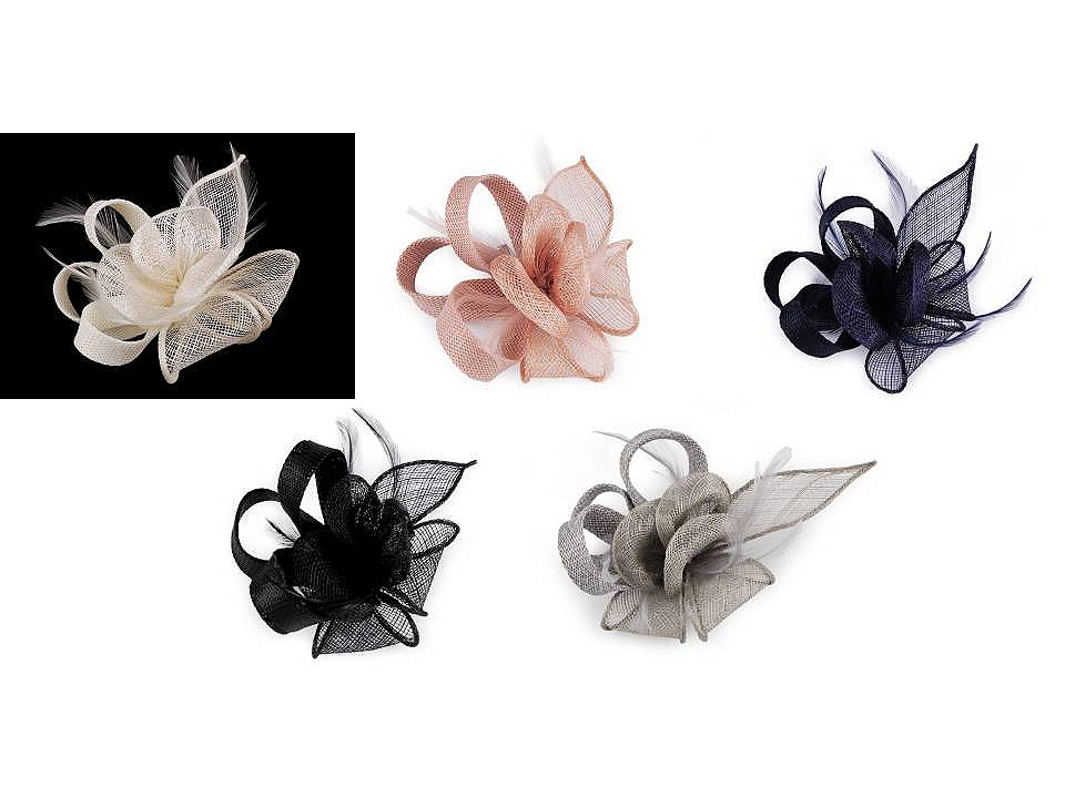 Elegantný fascinátor sa hodí na slávnostné príležitosti, na plesy alebo do divadla. Môžete ho využiť aj ako neprehliadnuteľnú brošňu. Je vyrobený z modistickej sieťky, ktorá je tvarovaná do okvetných lístkov a rôzne veľkých slučiek. Celok tvorí zaujímavý vzdušný kvet, ktorý je ozdobený pierkami.