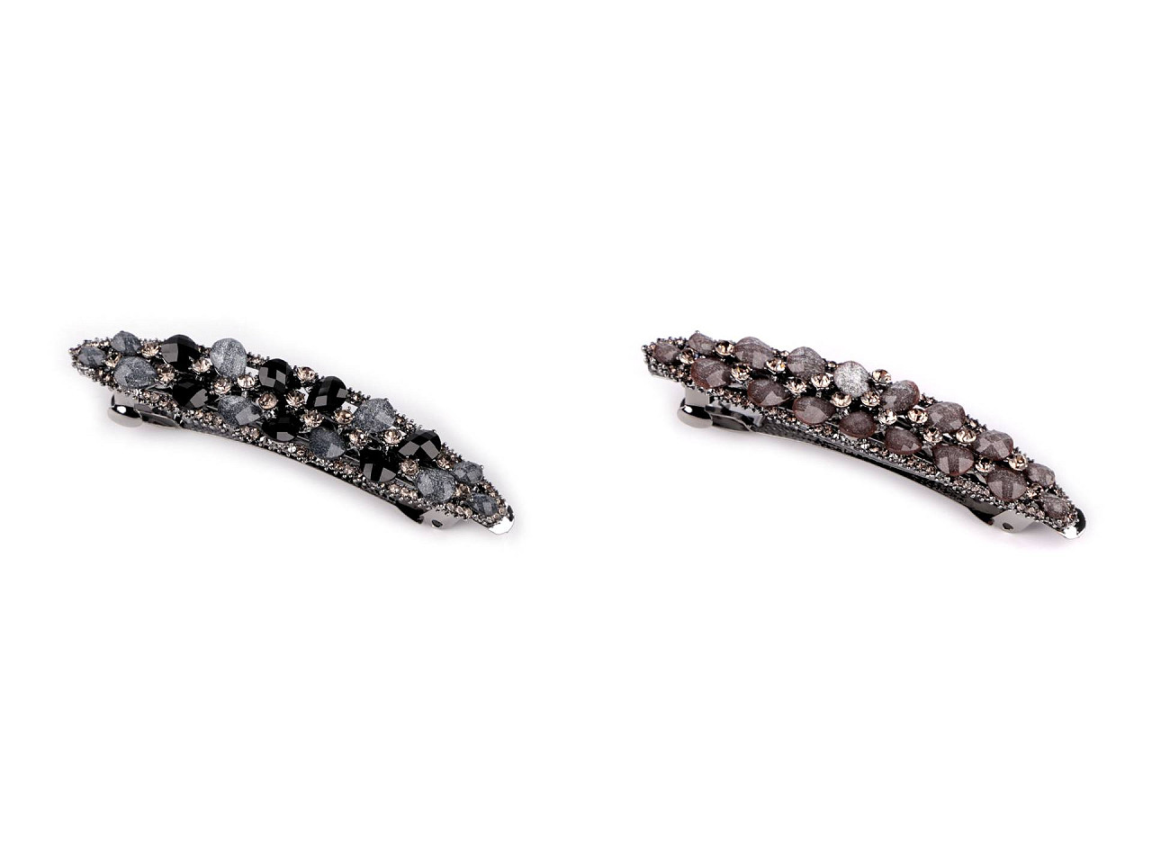 Francúzska spona zdobená akrylátovými brúsenými kameňmi luxusne ozdobí váš účes. Má nádherný lesk , ktorý priťahuje pozornosť. Luxusne ozdobí slávnostný účes. Či už máte jemné pramene alebo husté kučery, touto sponou ľahko zopnete vlasy do vrkoča alebo vytvoríte elegantný drdol, ktorý bude vyzerať, ako keby ho vytvoril profesionál. Spona má veľmi kvalitné celokovové prevedenie. Zacvakávací mechanizmus je pevný. Dĺžka časti pre vlasy je 5 cm.