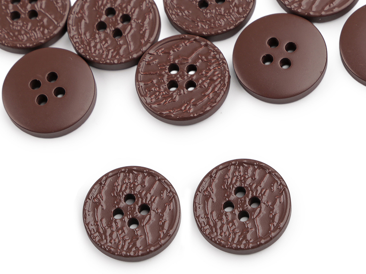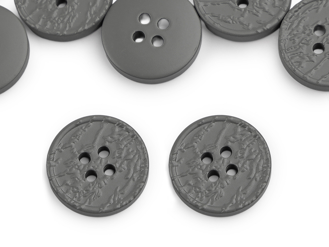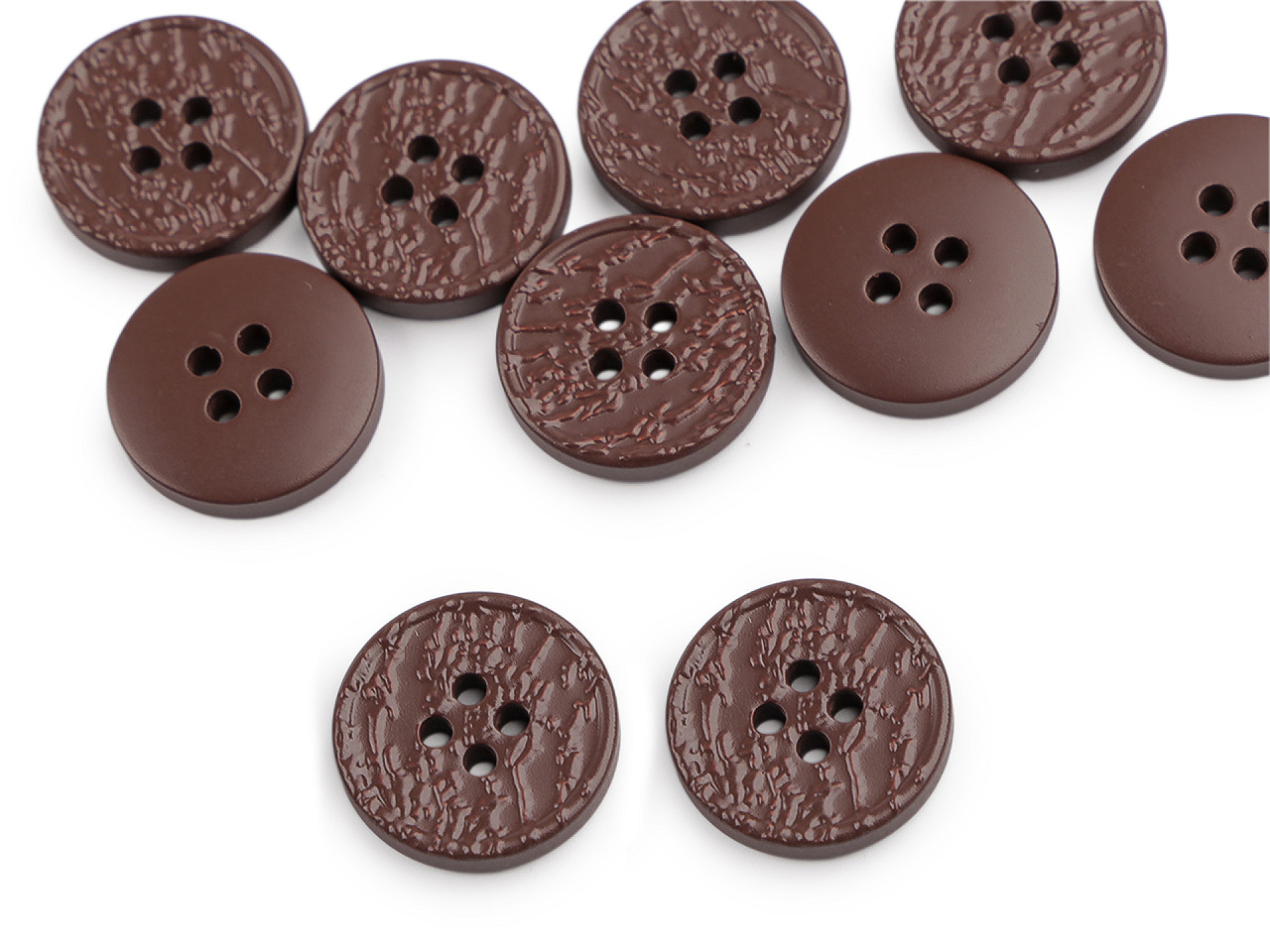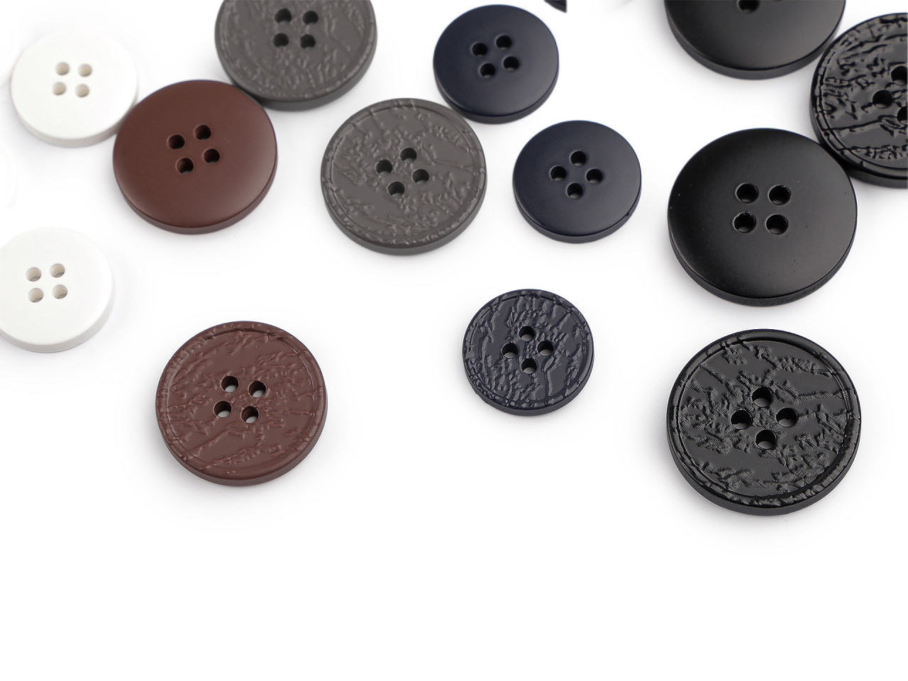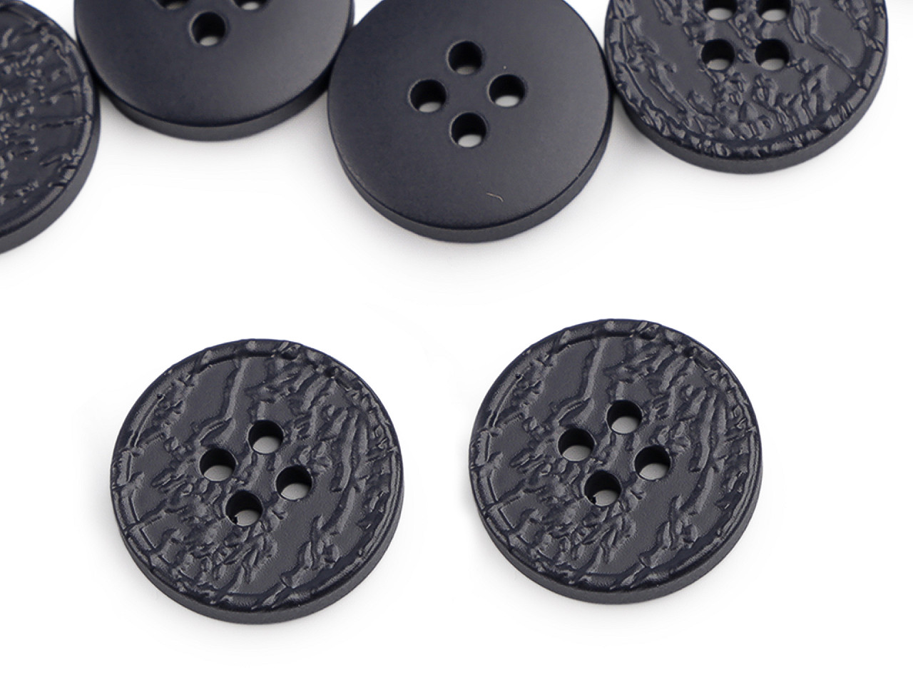 Štvordierkové gombíky so štruktúrovaným povrchom ponúkajú jednoduchú eleganciu, ktorá sa hodí na rôzne typy odevov a doplnkov. Vyniknú na kabátoch, svetroch, vestách a pod. Veľkosť gombíkov nájdete v tejto tabuľke .