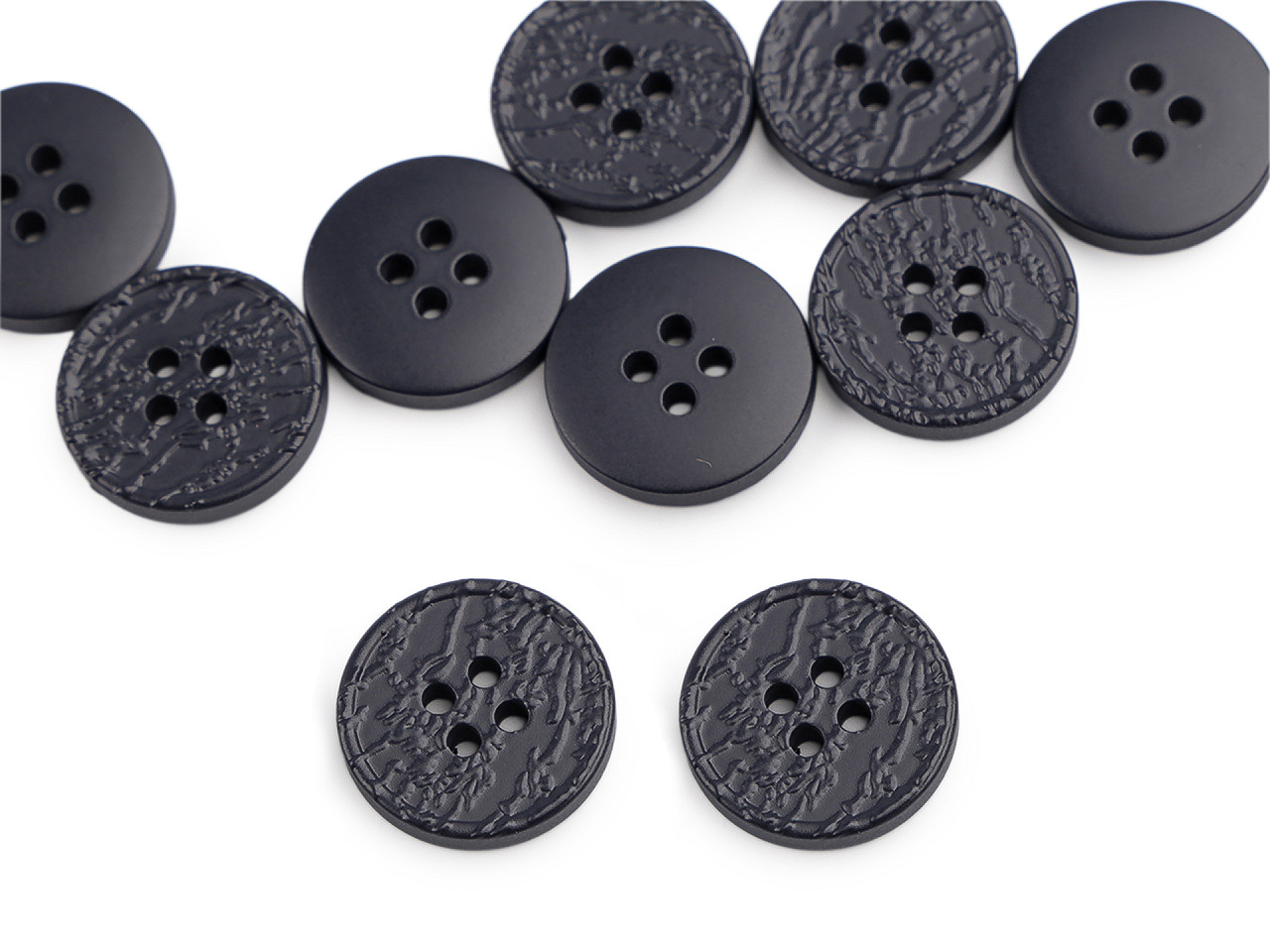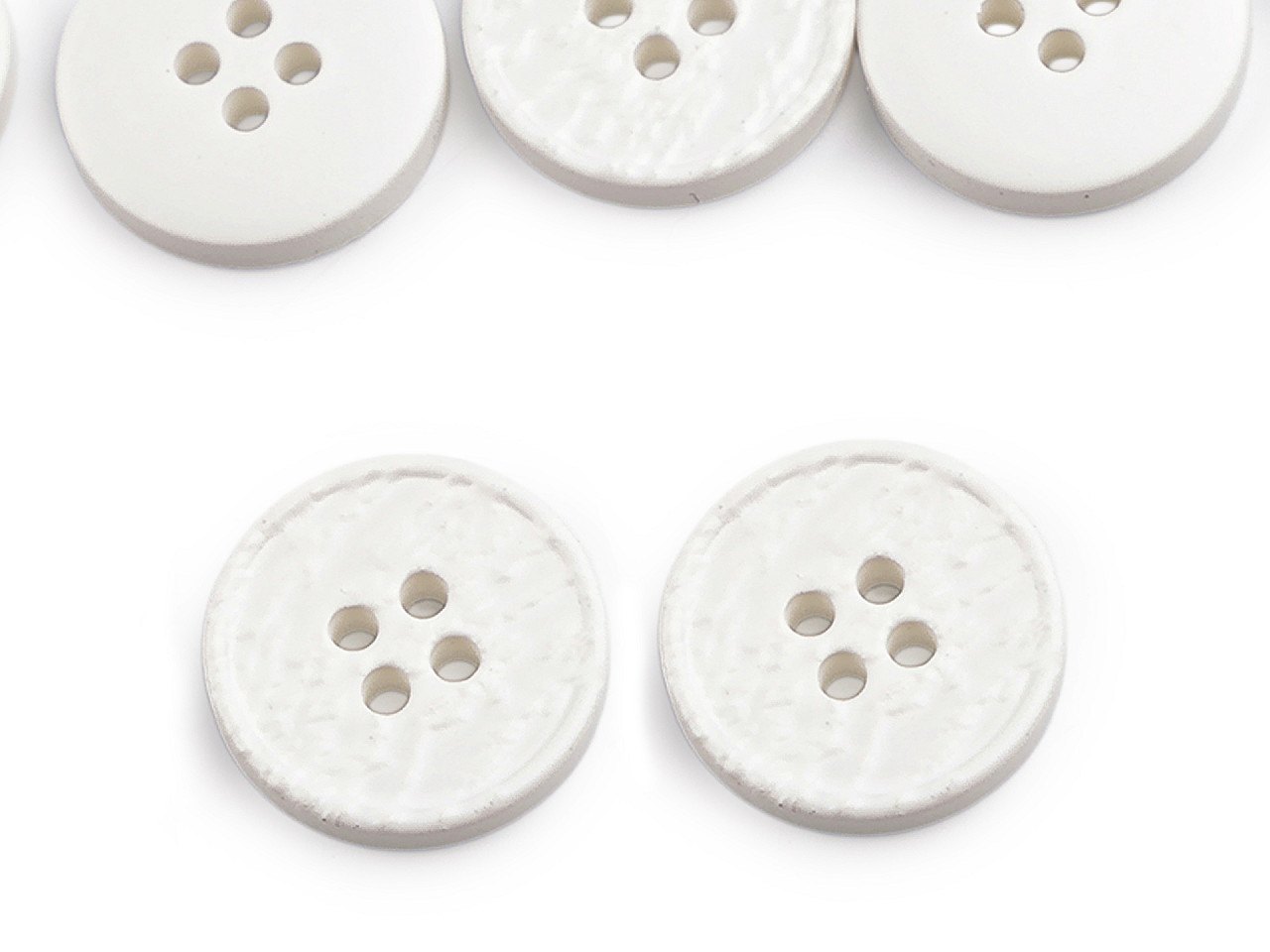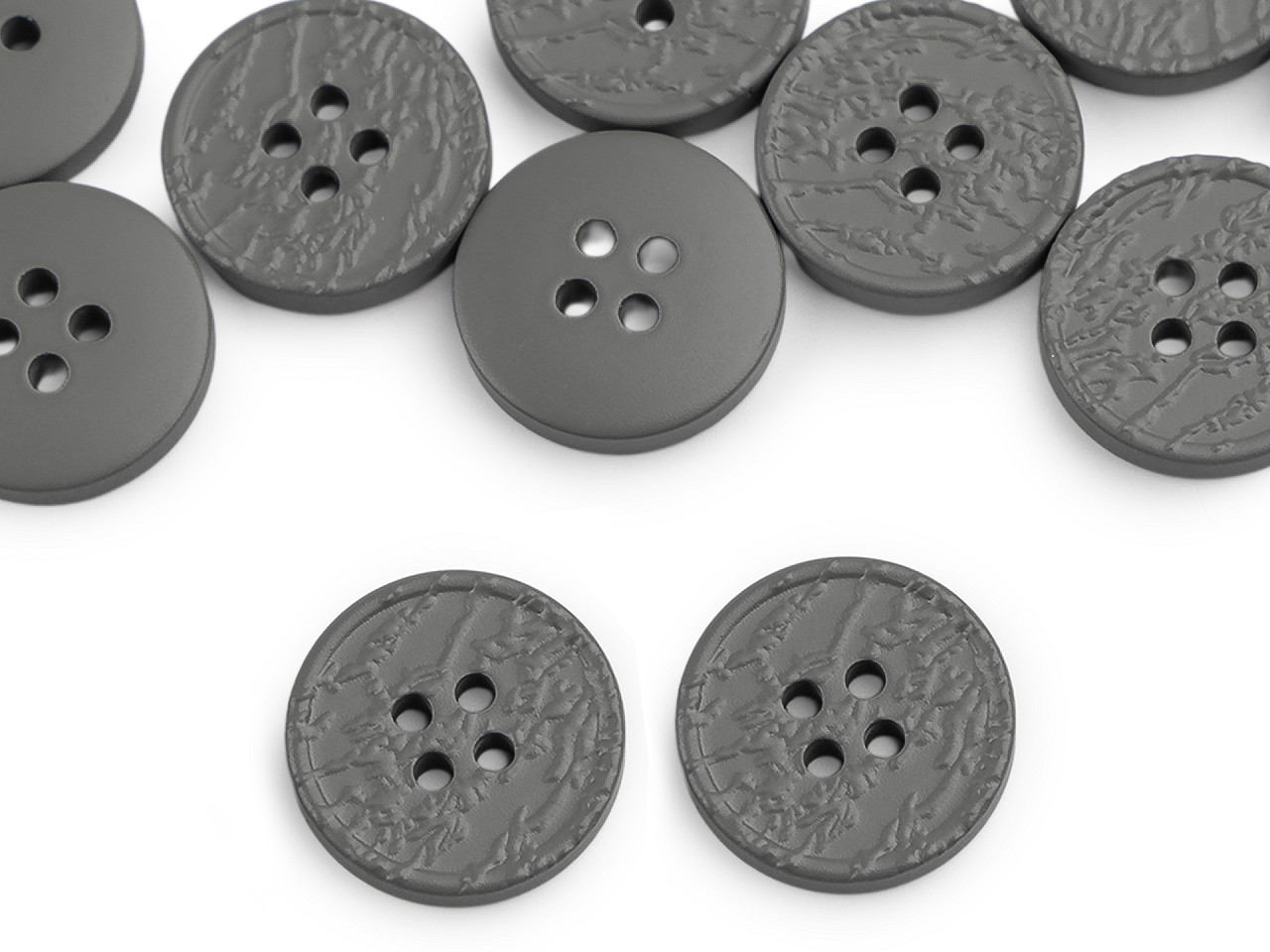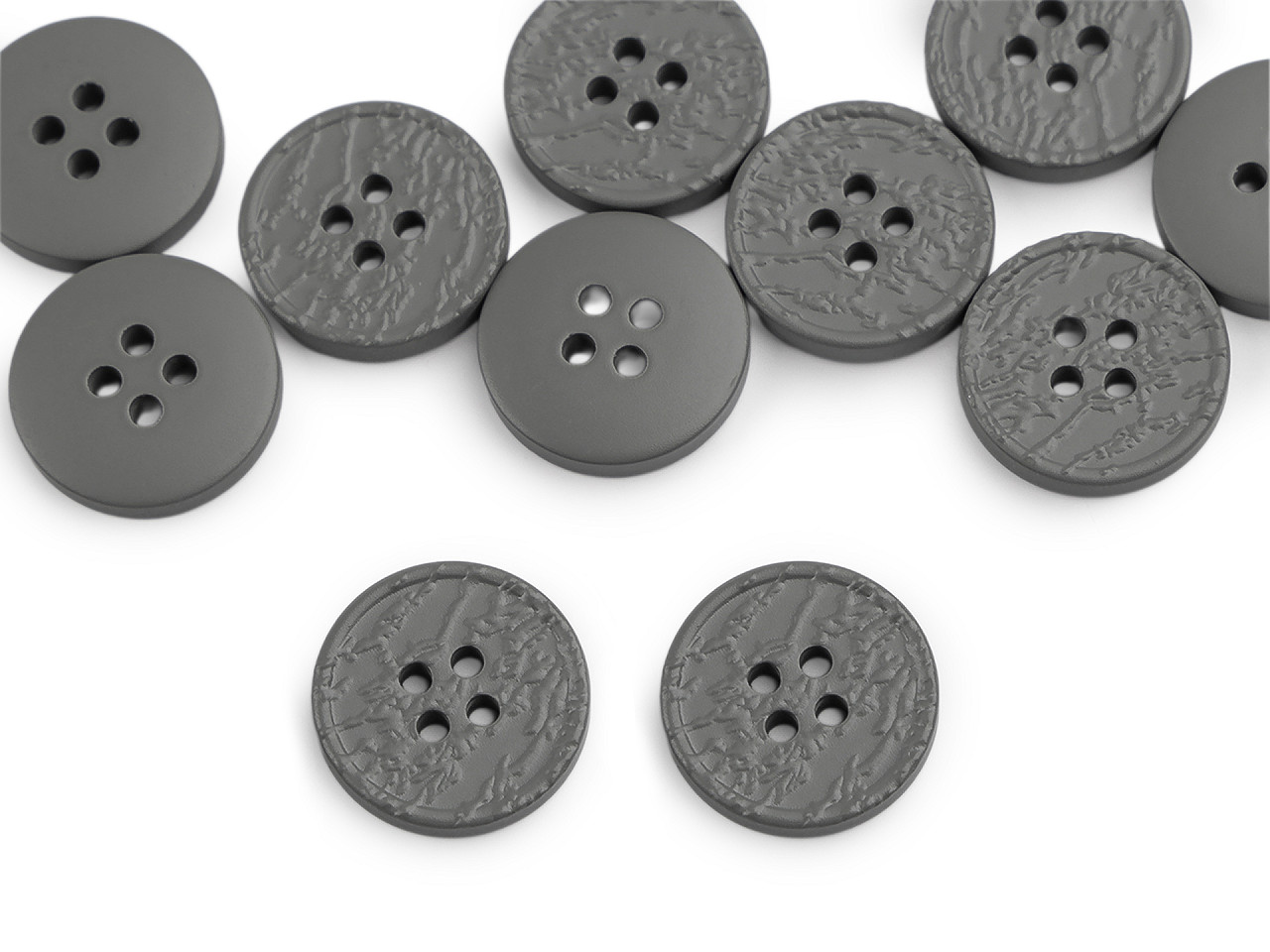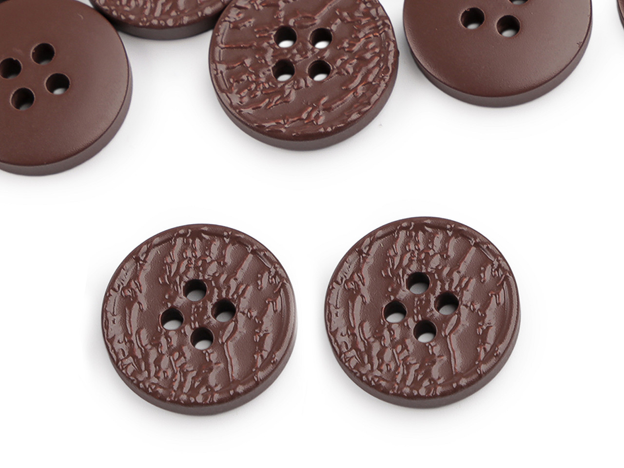 Štvordierkové gombíky so štruktúrovaným povrchom ponúkajú jednoduchú eleganciu, ktorá sa hodí na rôzne typy odevov a doplnkov. Vyniknú na kabátoch, svetroch, vestách a pod. Veľkosť gombíkov nájdete v tejto tabuľke .