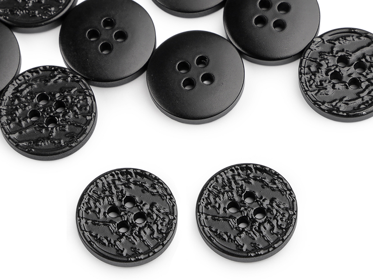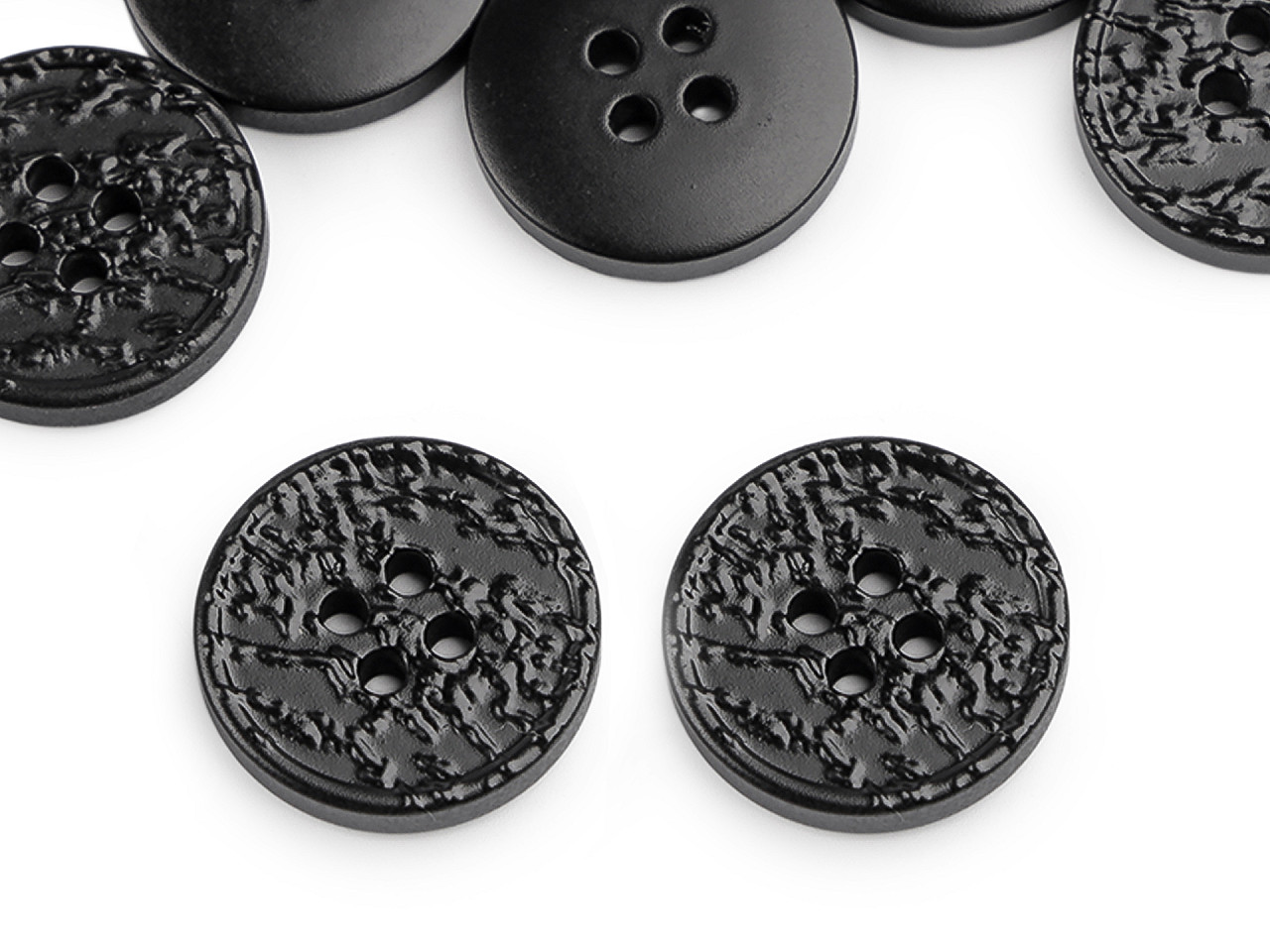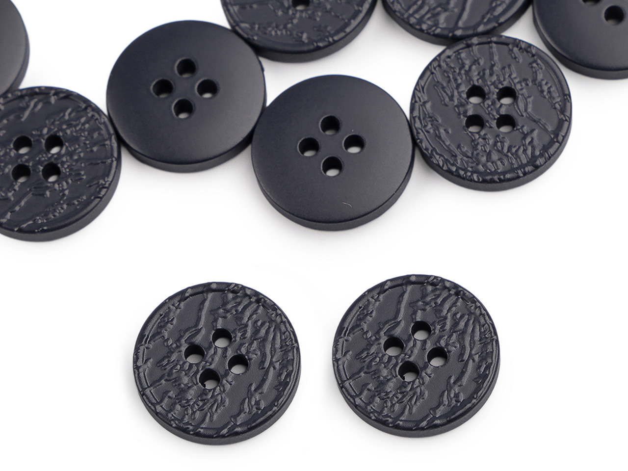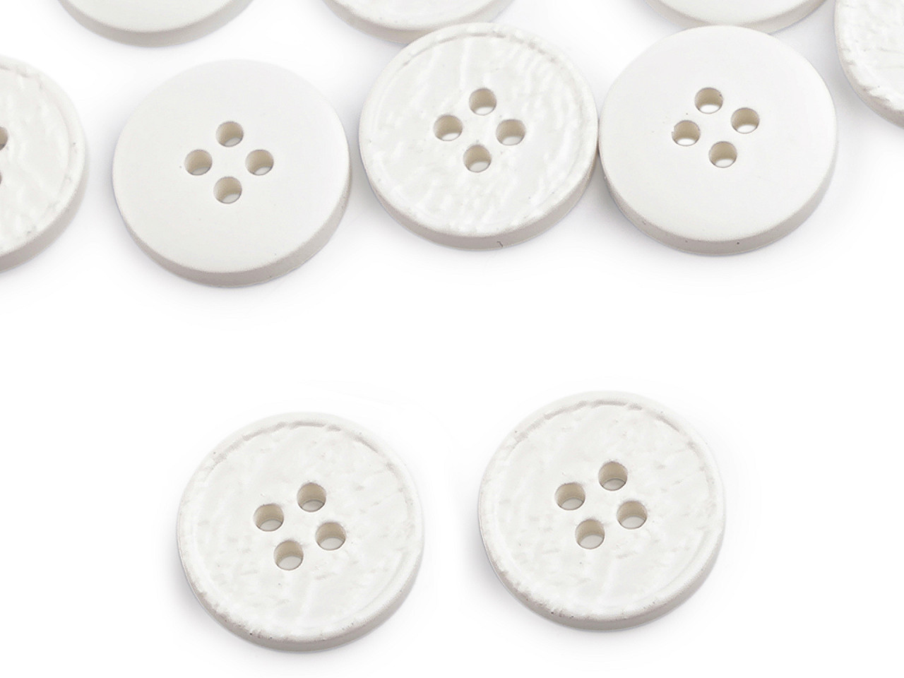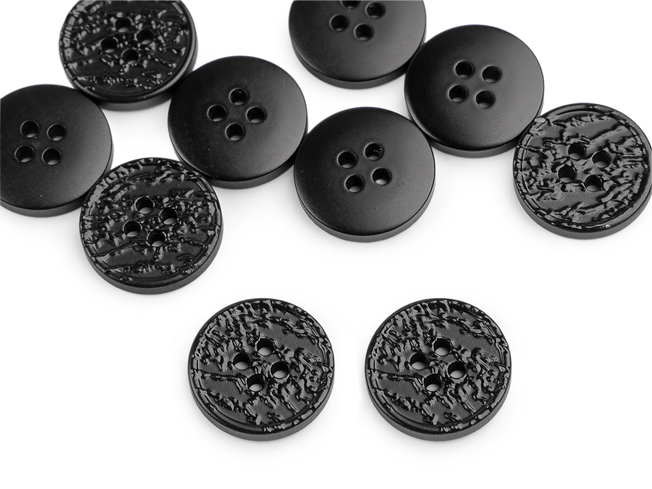 Štvordierkové gombíky so štruktúrovaným povrchom ponúkajú jednoduchú eleganciu, ktorá sa hodí na rôzne typy odevov a doplnkov. Vyniknú na kabátoch, svetroch, vestách a pod. Veľkosť gombíkov nájdete v tejto tabuľke .