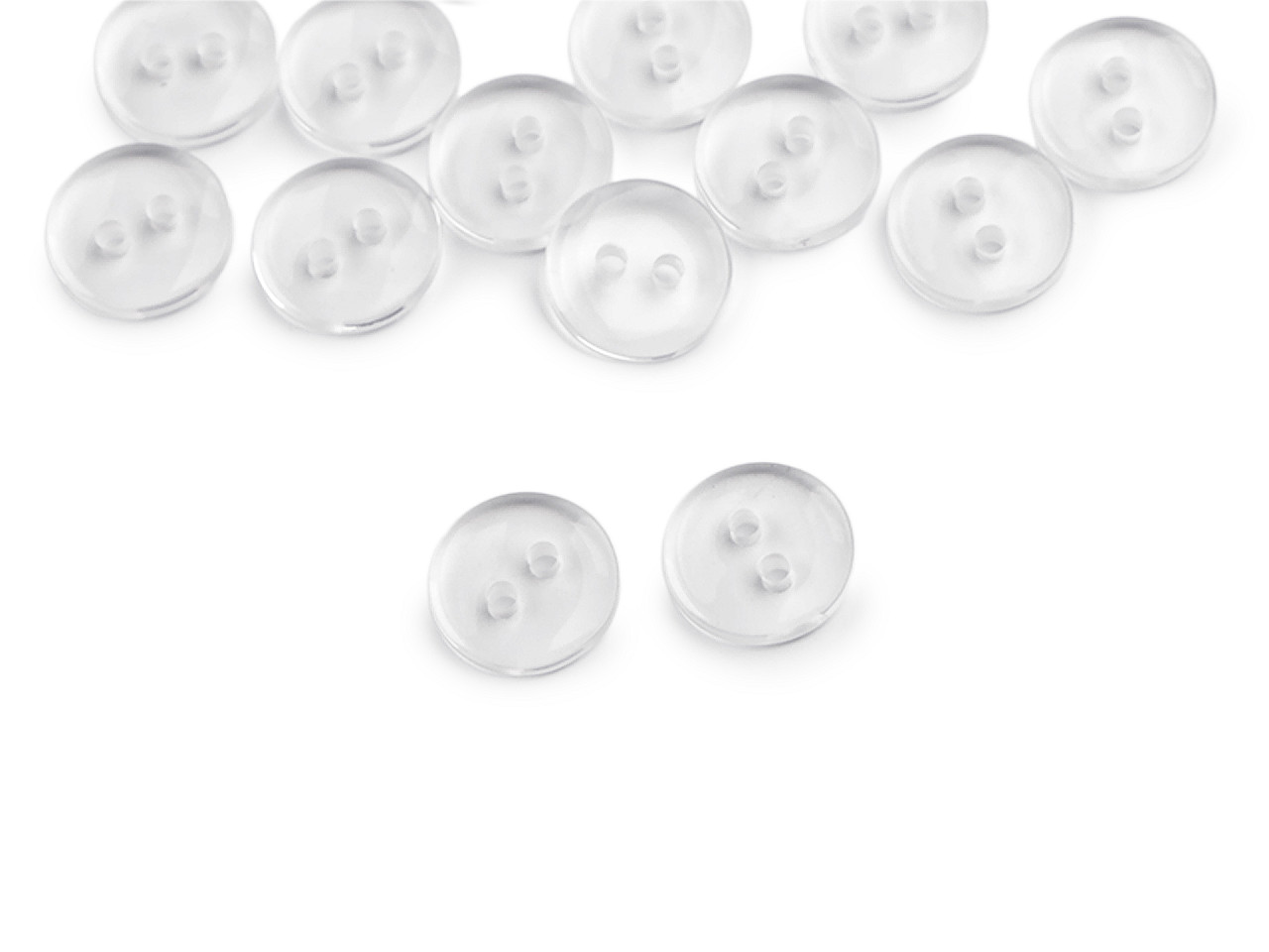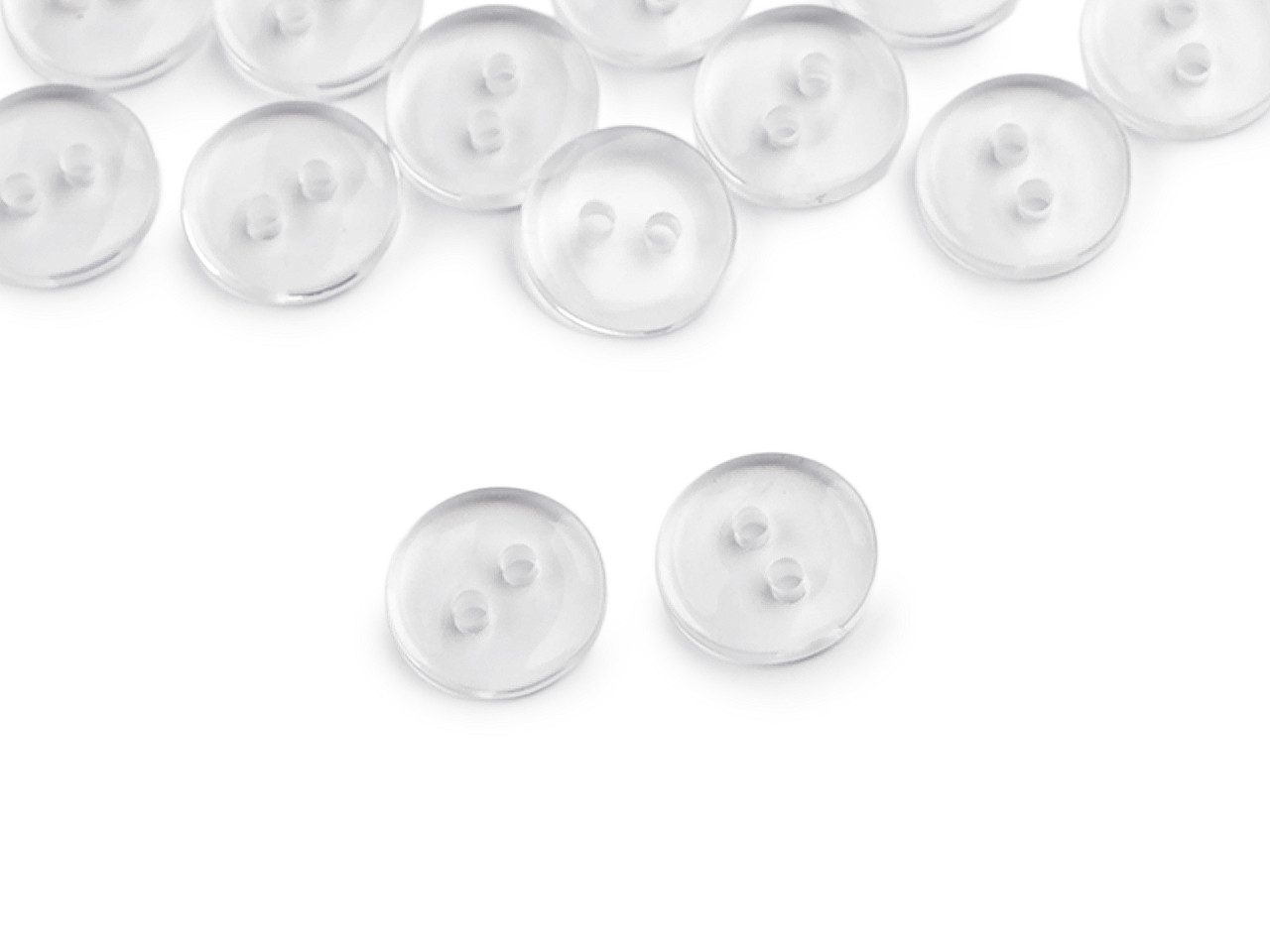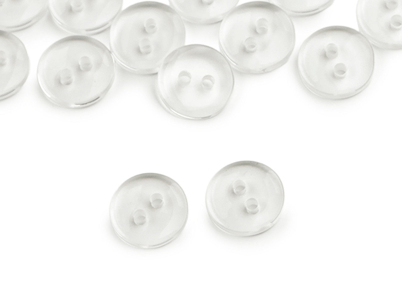 Transparentné dvojdierkové gombíky sú vhodné ako zapínanie na košele, svetre, šaty i vankúše. Dajú sa použiť tiež ako proti kus. Majú guľatý tvar. Gombíky sú zabalené v sáčiku.