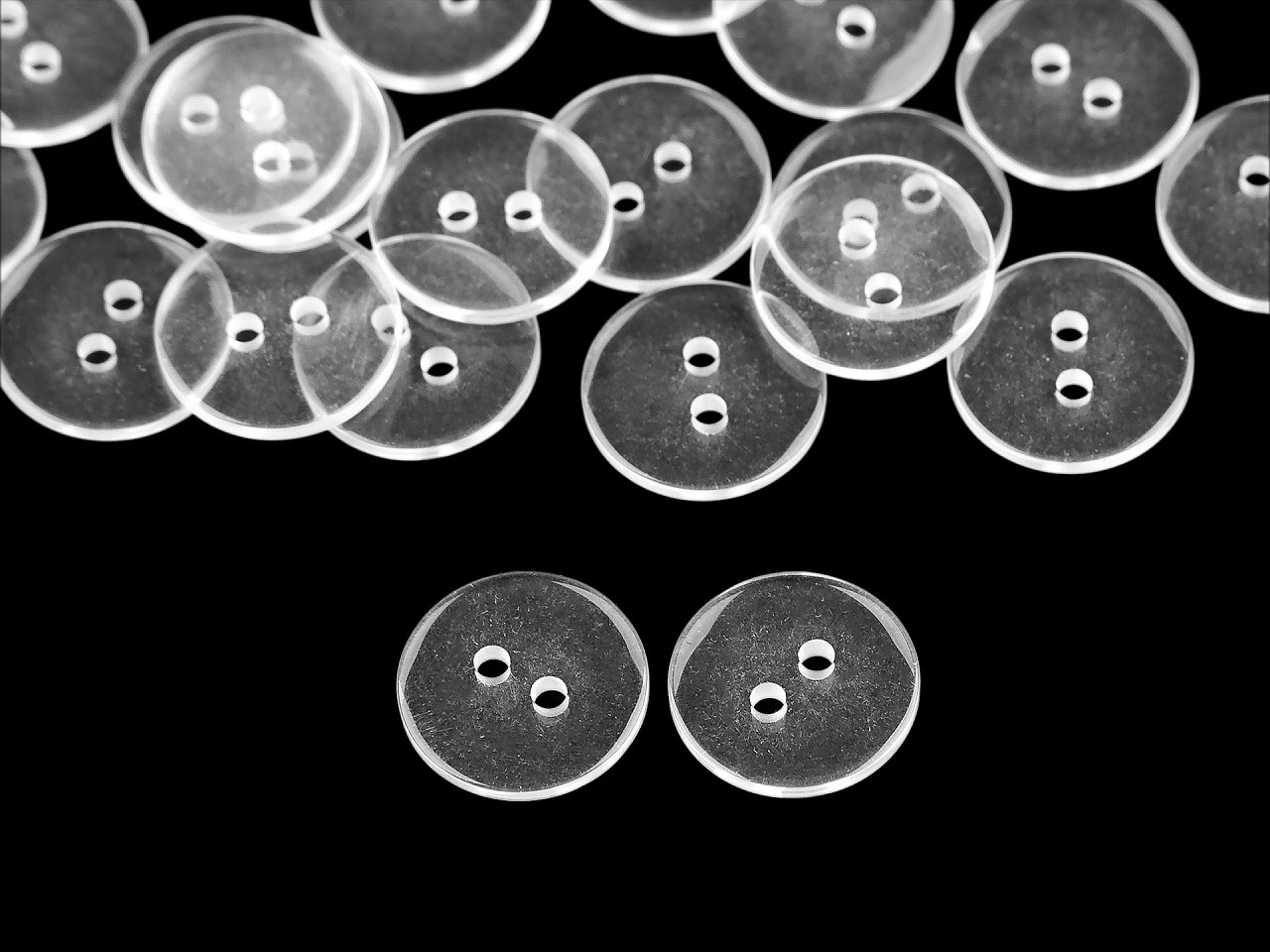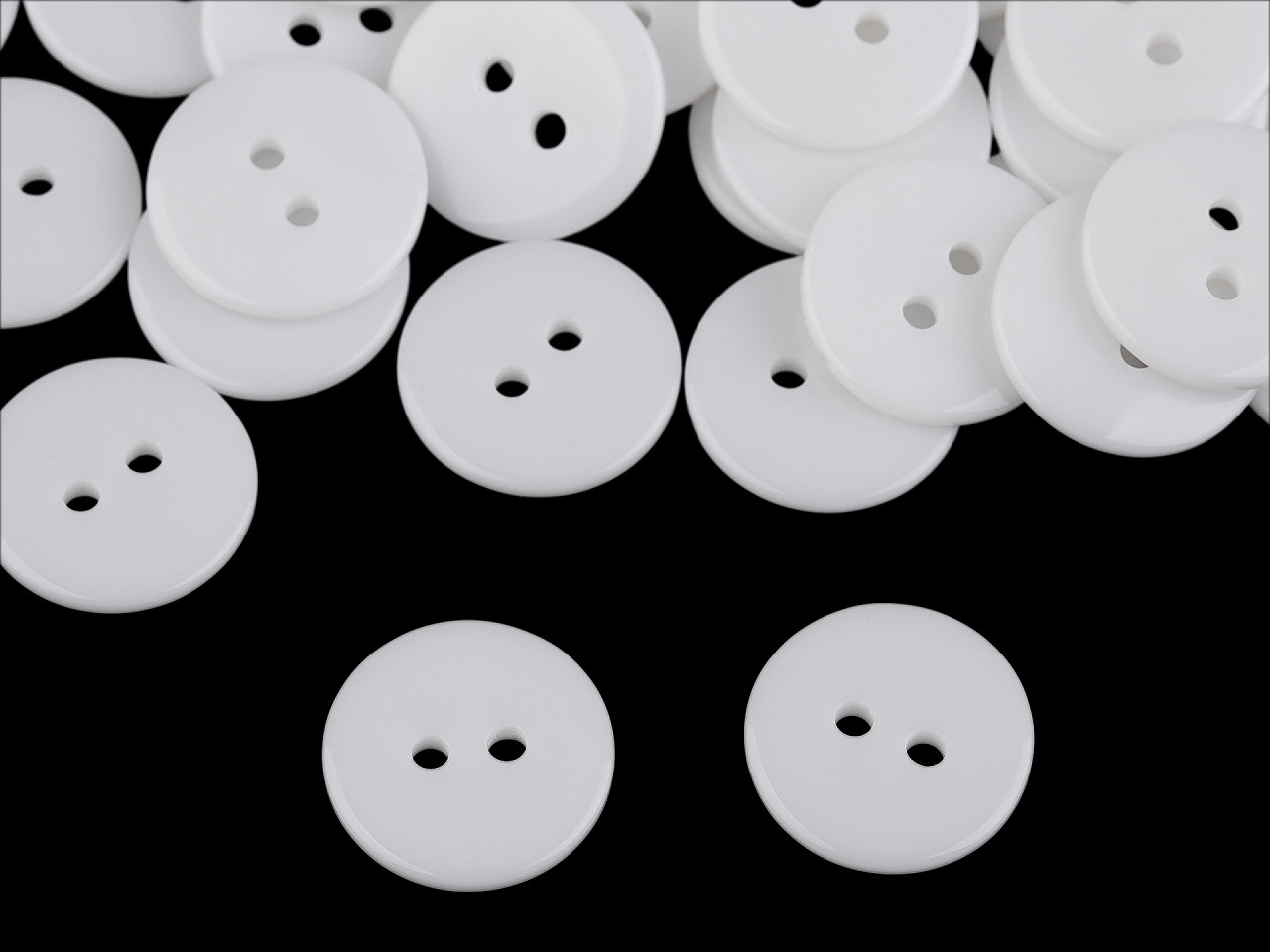 Dvoj-dierkové gombíky sú vhodné na košele, košelové goliere, svetríky a pod. Sú hladké, hodia sa i na podšitie.