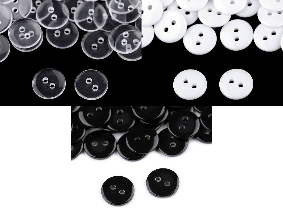 Dvoj-dierkové gombíky sú vhodné na košele, košelové goliere, svetríky a pod. Sú hladké, hodia sa i na podšitie. Sú balené v sáčiku. Veľkosť gombíkov nájdete v tejto tabuľke.