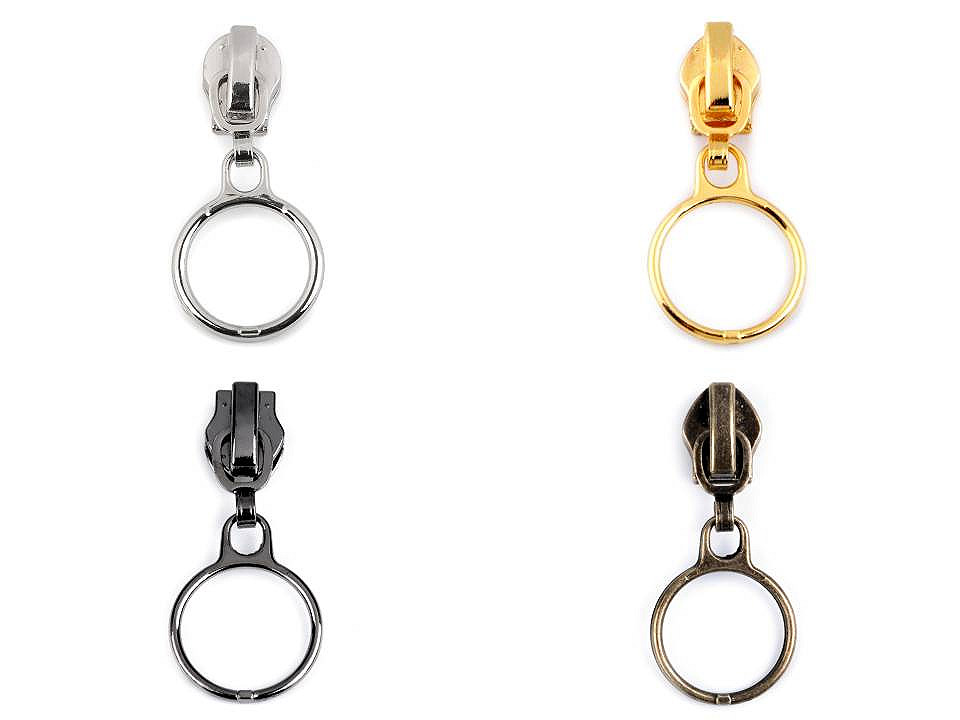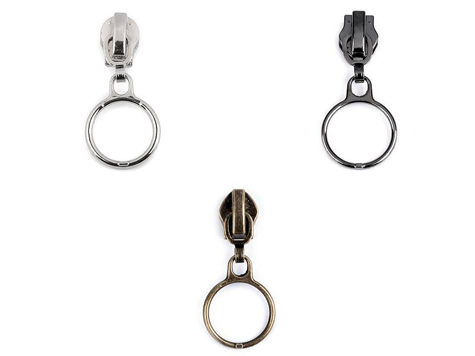 Kovový bežec s tiahlom v podobe krúžku je určený k špirálovým zipsom v metráži, ktoré u nás nájdete pod kódom 790304, 800963, 750994, 750503, 790305 . Priemer krúžku je 20 mm.
