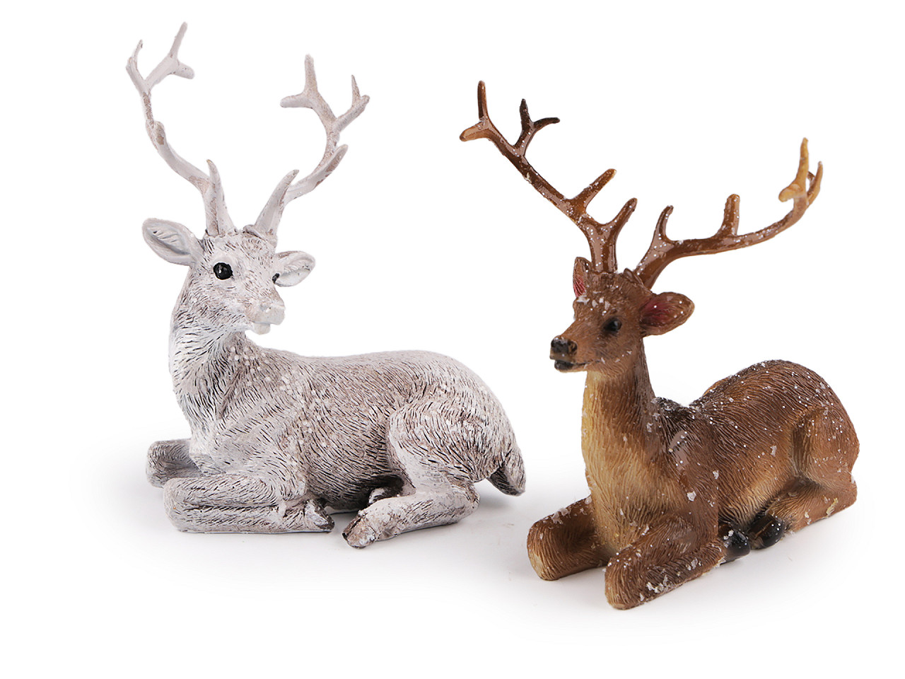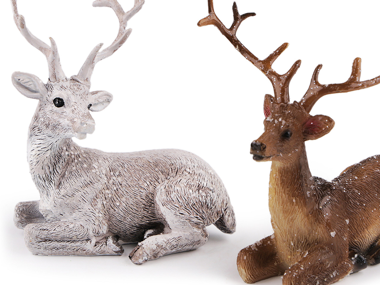 Dekoračný jeleň je jemne pokrytý umelým snehom s glitrami . Vynikne zakomponovaný vo vianočných väzbách, na vencoch aj na sviatočnej tabuli.