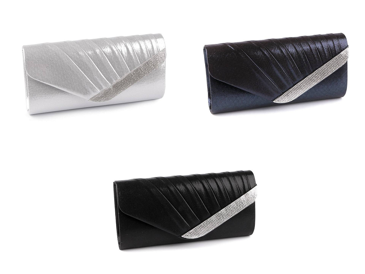 Listová kabelka ozdobená brúsenými kamienkami je elegantným doplnkom na rôzne slávnostné udalosti. Luxusný vzhľad a ligot tejto kabelky pritiahne pozornosť širokého okolia. Listová kabelka má textilný poťah, na prednej strane je nariasená. Je pevná, vystužená, vo vnútri má polyesterovú podšívku a malé vrecko na drobnosti. Zapína sa na magnet. Ku kabelke patrí odopínateľná retiazka . Listovú kabelka môžete nosiť s retiazkou cez rameno alebo bez nej len tak v ruke.