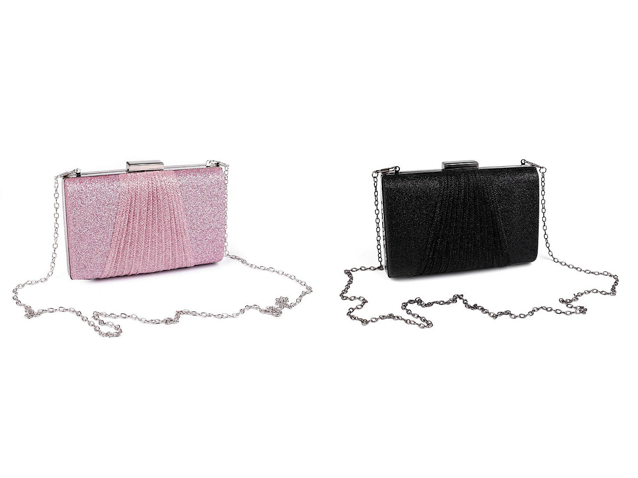 Malá spoločenská kabelka vyžaruje eleganciu a luxus, vďaka glitrom sa trblieta . Na prednej strane je ozdobená zriasenou tkaninou. Kabelka má po celom obvode kovový rámček. Je pevne vystužená, jej súčasťou je dlhá odnímateľná retiazka na karabíny. Glitre sú pevné, neodierajú sa.