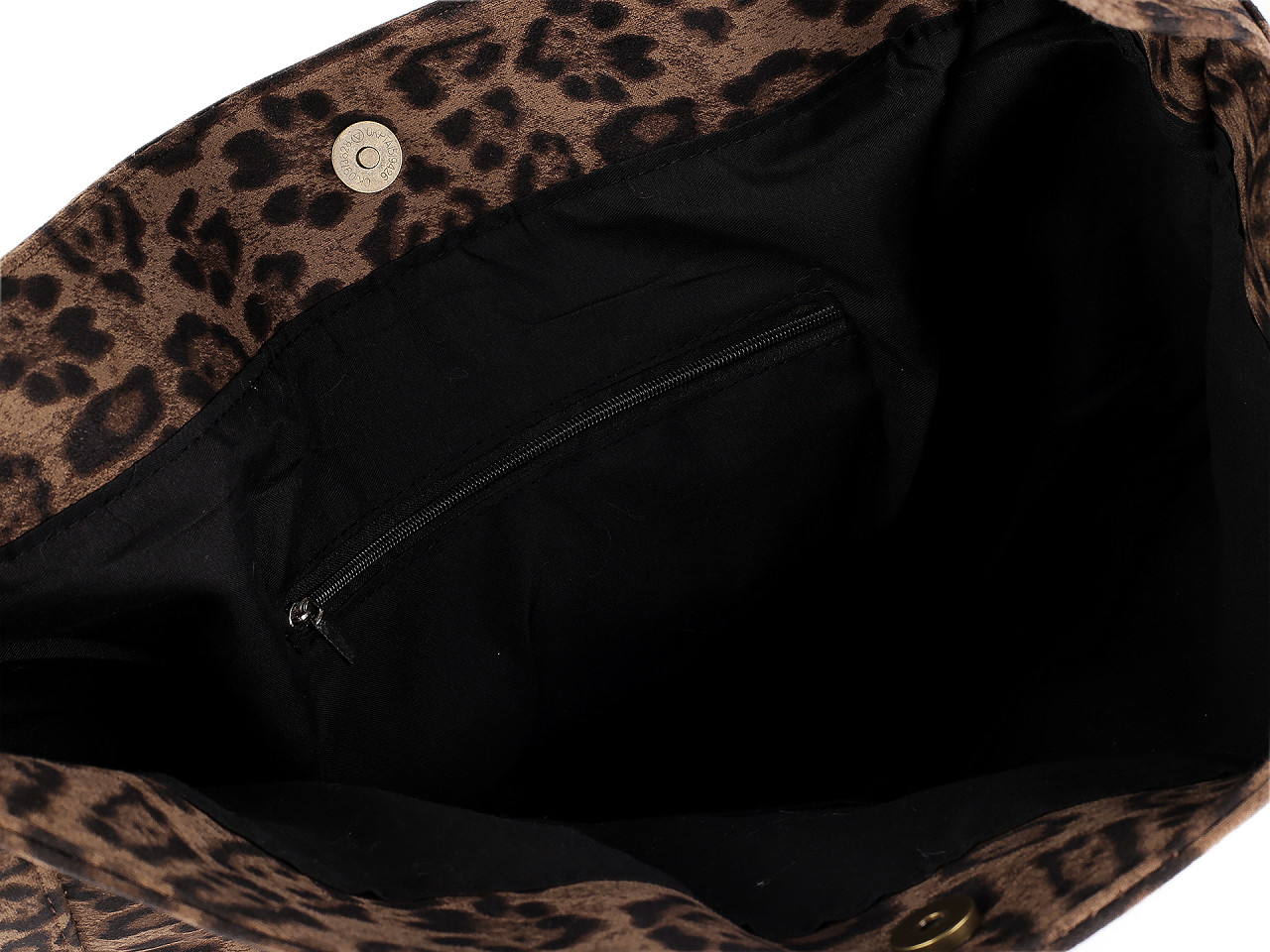 Veľká kabelka so zvieracím vzorom je štýlová a elegantná. Je ušitá z veľmi pevného textilného materiálu , predstavuje dokonalú kombináciu štýlu a pohodlia. Jej zvierací vzor dodáva každému outfitu odvahu a výraznosť, zatiaľ čo použitý materiál zaisťuje príjemný dotyk a jednoduchú údržbu. Má magnetické zapínanie, vo vnútri nájdete vrecko na zips na uloženie cenných drobností a jedno malé ploché vrecko. Má široké spevnené dno , vďaka svojmu veľkému vnútornému priestoru si môžete byť istí, že do nej ľahko uložíte všetky svoje nevyhnutnosti. Hore má ucho do ruky , ktoré sa dá nosiť aj na ramene. Je ideálna na každodenné používanie.