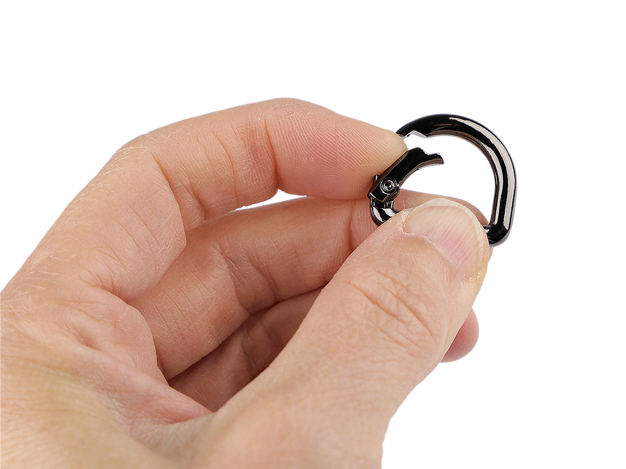 Malá karabína v tvare polokrúžku vám poslúži na pripevnenie príveskov ku kabelke, batohu či k taške a pod. Môžete ju použiť ako klasickú karabínu alebo polokrúžok.