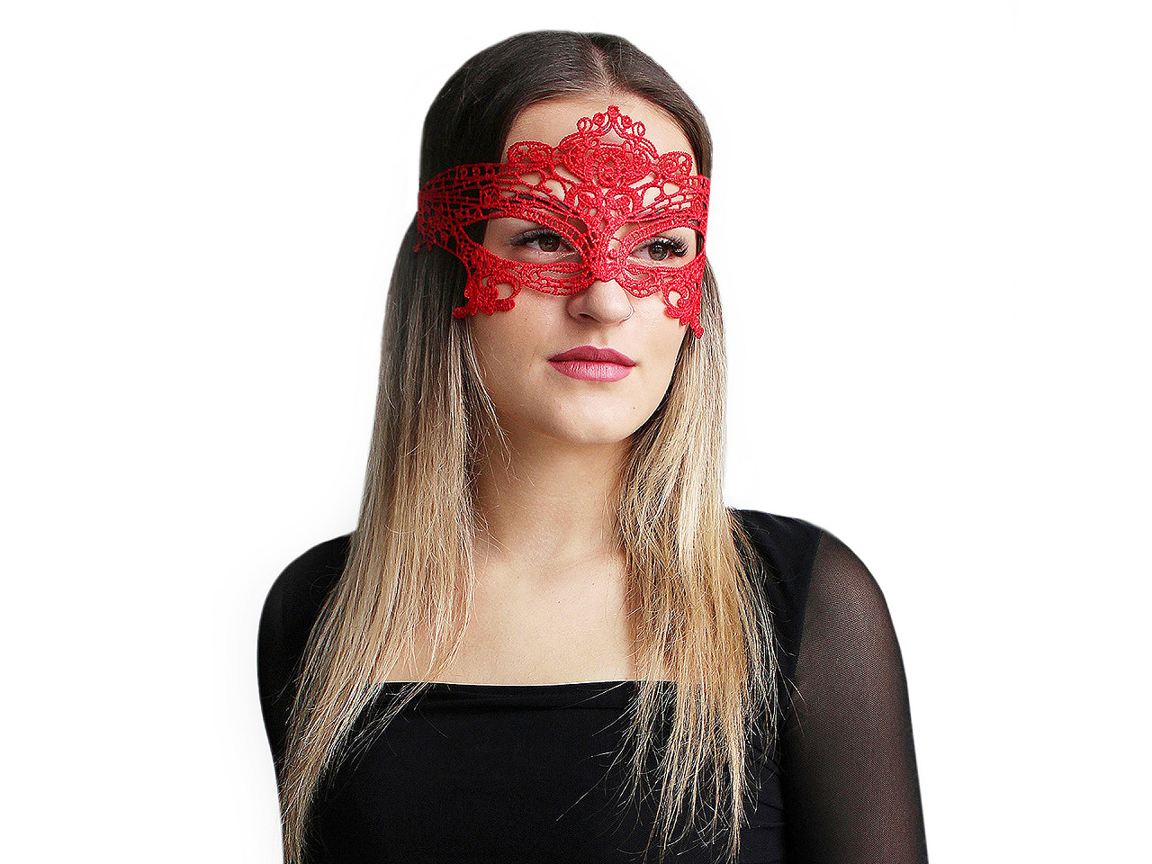 Elegantná čipková škraboška vám dodá tajomný a zvodný vzhľad. Využijete ju na rôzne večierky, párty, karneval a pod. Je naškrobená, ale zároveň tvárna a pri nosení neškriabe. Zaväzuje sa pomocou stuhy.