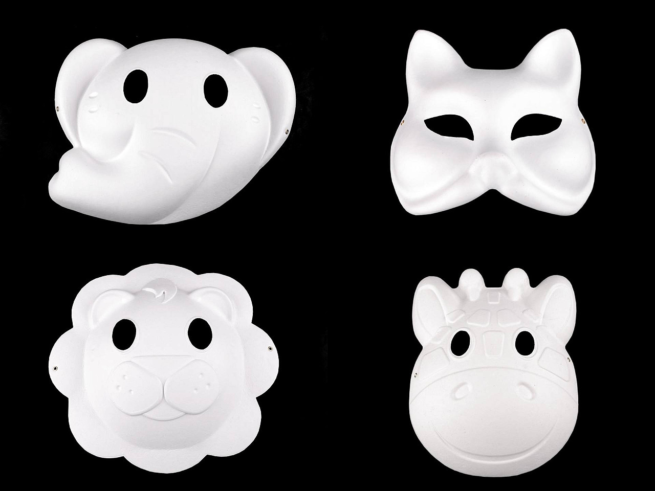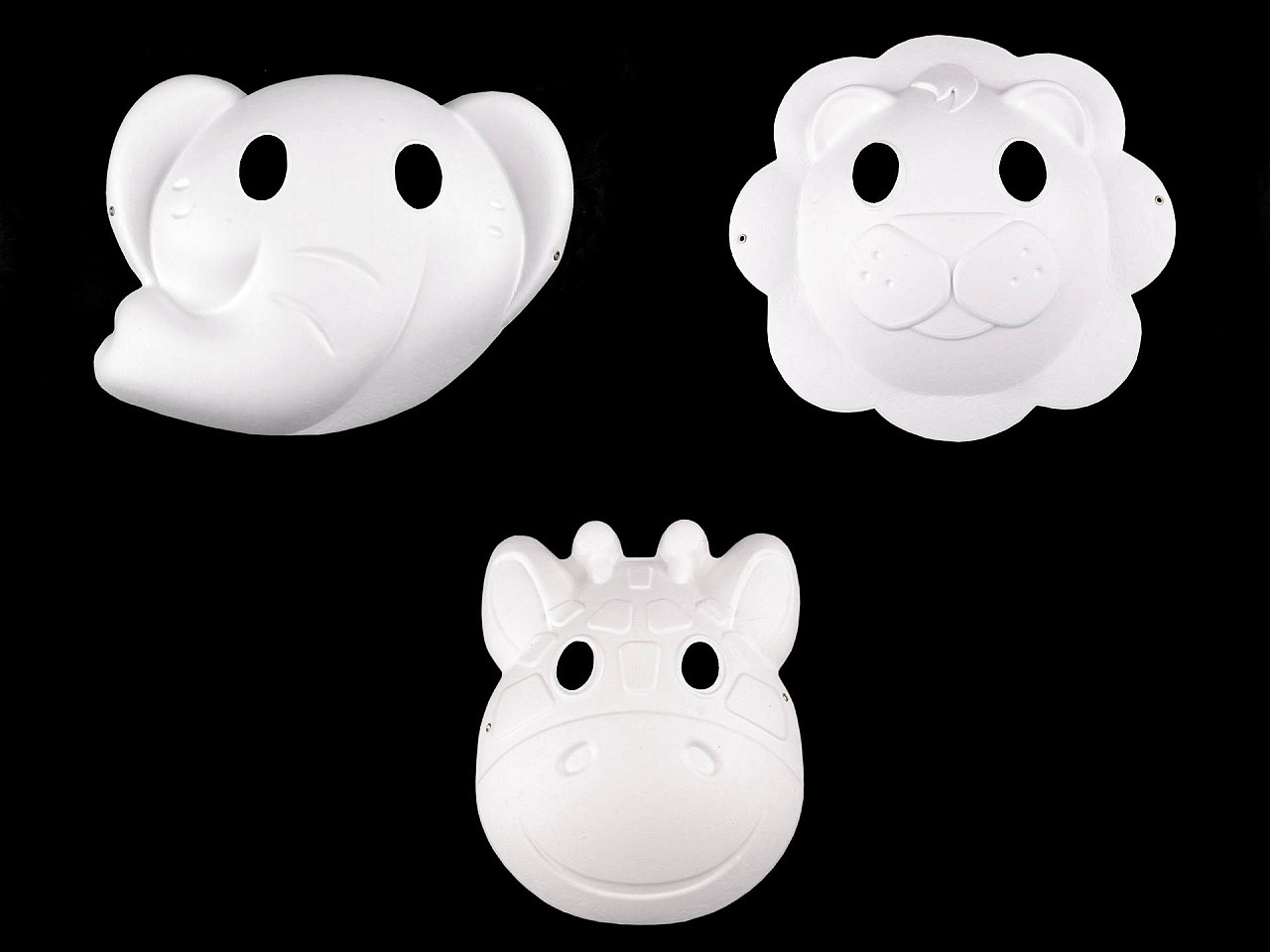 Maska na tvár s motívom zvieratka je kvalitná, z pevného papiera. Ide o polotovar, ktorý môžete ďalej zdobiť. Na tvári drží vďaka gumičke , ktorá je k maske pripevnená kovovými očkami. Použitie: Masku využijete na príležitosti ako sú Halloween, karnevaly a párty. Môžete ju domaľovať farbami alebo na ňu nalepiť flitre či samolepiace papiere . Popustite uzdu svojej fantázii a dajte maske nádych jedinečnosti. Rozmery pri maske č. 1 - Slon sú 20 x 24,5 cm, dĺžka gumy je 28 cm. Rozmery pri maske č. 2 - Líška (Mačka) sú 17,5 x 19 cm, dĺžka gumy je 27 cm. Rozmery pri maske č. 3 - Lev sú 22 x 23 cm, dĺžka gumy je 28 cm. Rozmery pri maske č. 4 - Žirafa sú 18 x 23 cm, dĺžka gumy je 24 cm. Rozmery pri maske č. 5 - Zebra sú 18 x 23 cm, dĺžka gumy je 25 cm.