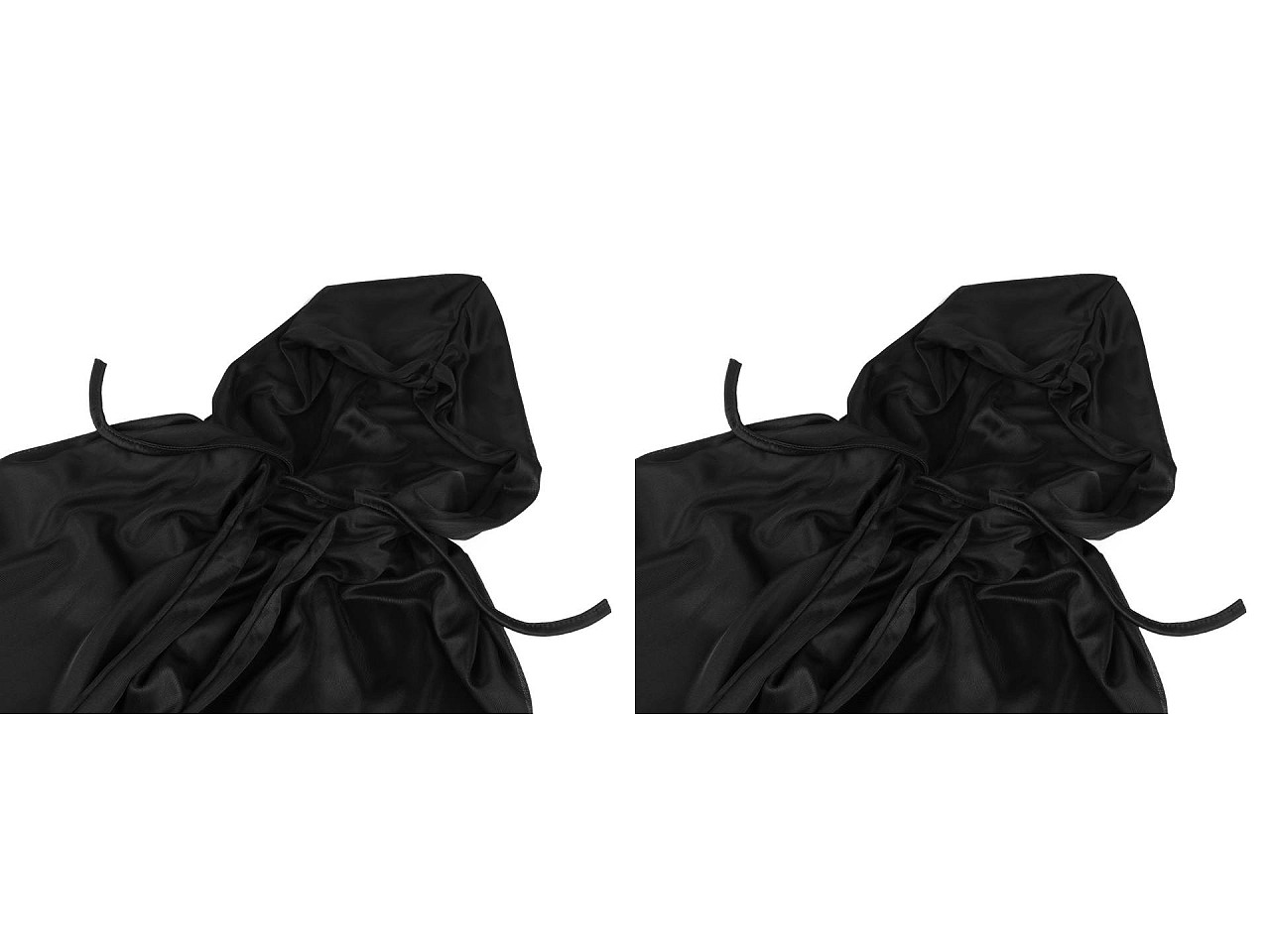 Karnevalový plášť s kapucňou využijete ku kostýmu černokňažníka, kúzelníka, lúpežníka, upíra, čarodejnice a pod. Viaže sa pomocou šnúrok. Plášť má dve vrstvy, materiál je polopriehľadný. Plášť je vhodný pre deti aj dospelých. Šírka č. 1 je 100 cm. Dĺžka je 90 cm. Šírka č. 2 je 110 cm. Dĺžka je 120 cm.