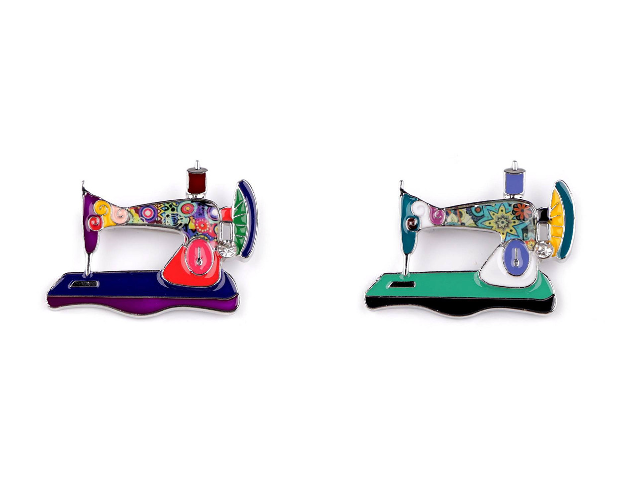 Smaltovaná brošňa šijacieho stroja bude skvelým darčekom nielen pre krajčírku. Ocenia ju všetky kreatívne ženy, ktoré milujú farby. Je ozdobená brúseným kamienkom . Z rubu má brošňový špendlík. Môžete ju nosiť nielen na odevoch, hodí sa aj na ozdobenie klobúkov, tašky či zopnutie šatky. Brošňa je na plastovej karte, ktorú je možné zavesiť na predajné stojany.