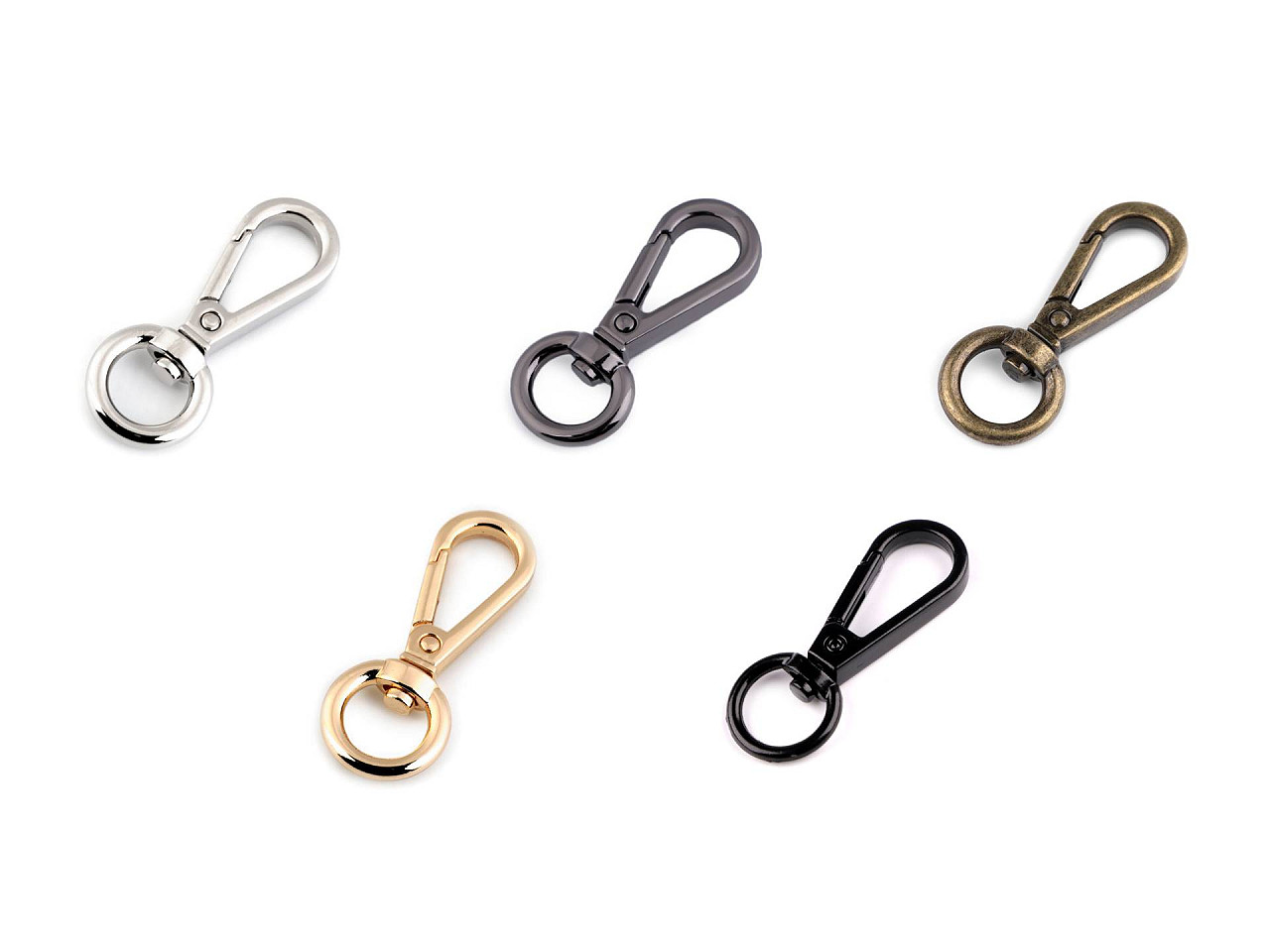 S kovovou karabínou si môžete vyrobiť kľúčenky alebo upevniť prívesok ku kabelke. Je vhodná aj na pripevnenie retiazok na menšie kabelky alebo listové kabelky. Karabína je z nemagnetického kovu, magnetické je iba koliesko uprostred. Vnútorný priemer prievlaku pri č. 6 je 13 mm, vonkajší priemer prievlaku je 18 mm.