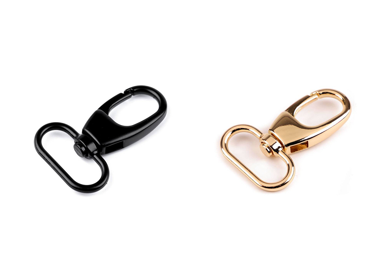 Kovovú karabínu využijete na upevnenie popruhov k taškám, kabelkám a napríklad aj na výrobu vodítok pre psov. Je otočná.