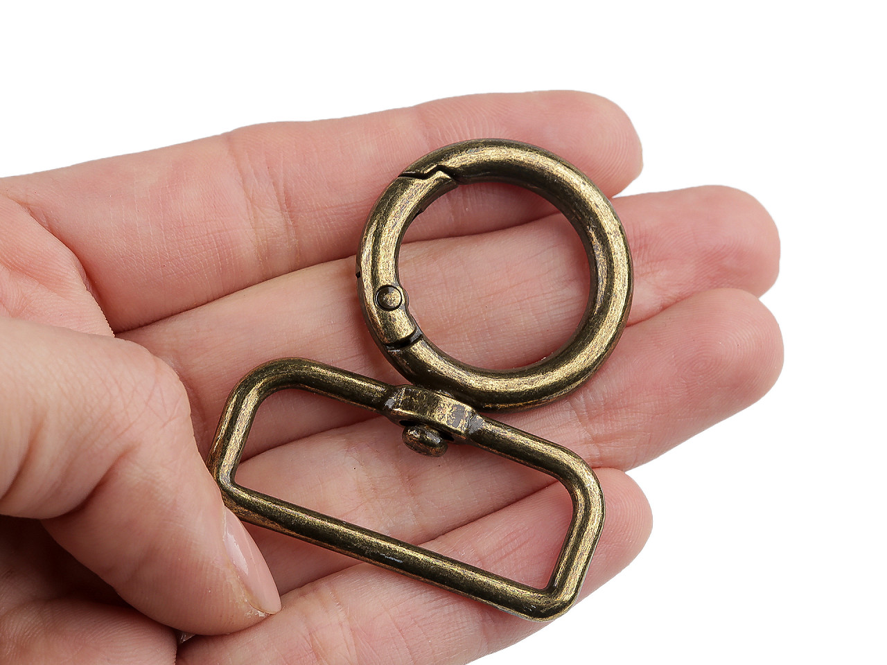 Dizajnová kovová karabína vynikne prevažne na kabelkách, kedy za ňu upevníte popruh či ucho. Ale využijete ju aj na mestské batohy. Je otočná .