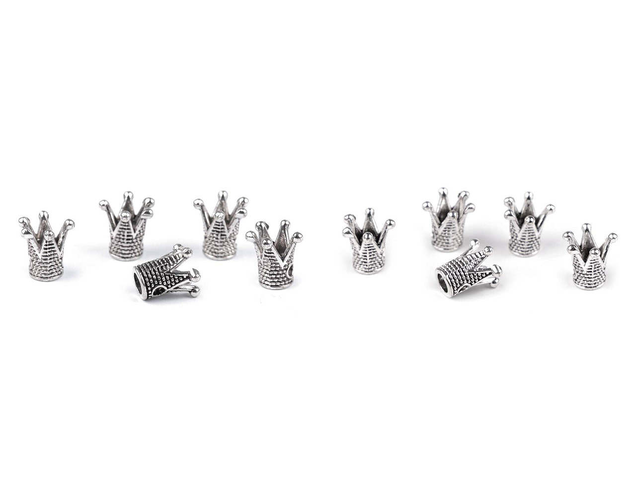 Kovová korunka pre bábiku dotiahne vašu rozprávkovú postavičku do dokonalosti. Vďaka dvom prievlakom po stranách ju môžete prišiť. Môžete ju použiť aj na dekoračné účely . Zaujímavo vynikne uviazaná na stužke, ktorou sa oviaže napr. svietnik, papierové prianie alebo darčeková krabička. Môžete s ňou ozdobiť napr. kľúče. Je vhodná na tvorbu ketlovaných záložiek do kníh alebo ozdobných príveskov na kabelky na karabínky. Využijete ju aj ako ozdobu na odevy, tašky a kabelky.
