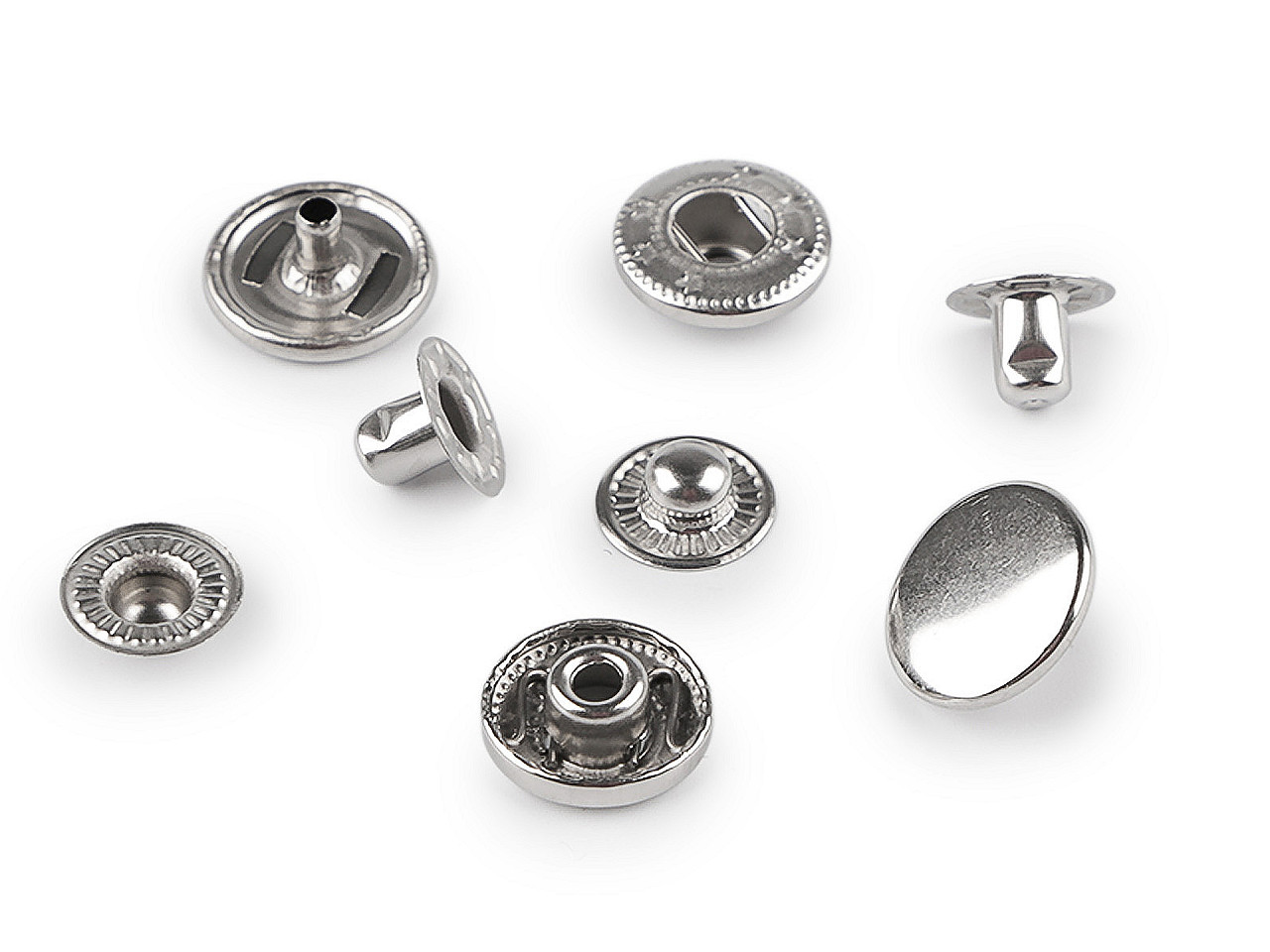 Kovové cvoky z nerezovej ocele využijete na odevy, tašky, kabelky a pod. Nitovanie sa vykonáva lisom, ktorý nájdete pod kódom 070241 alebo 790770 a pistonom . Sada sa skladá zo 4 dielov.