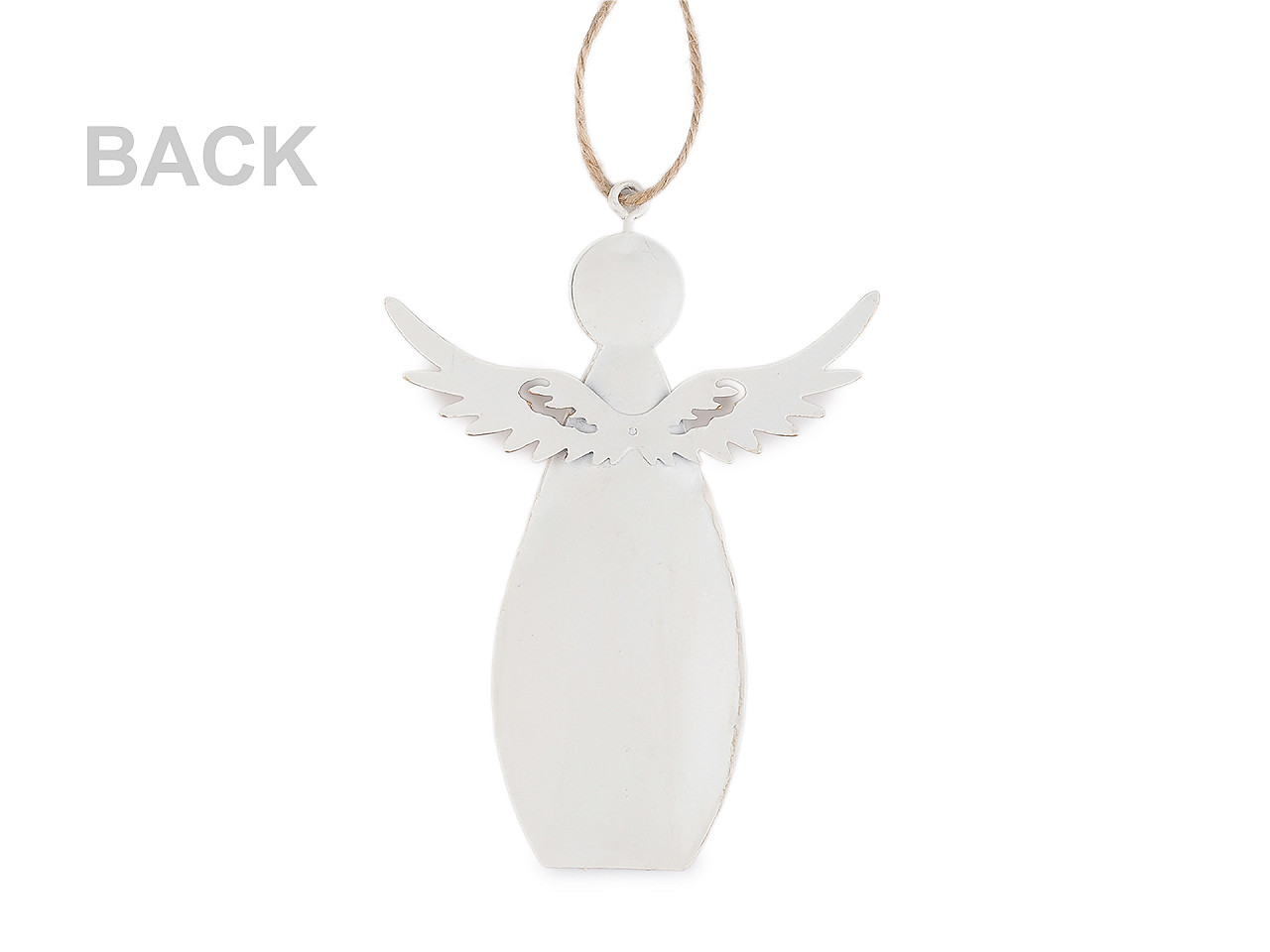Dekoračný kovový anjel v minimalistickom dizajne pôsobí nadčasovo a dokonale sa hodí do akéhokoľvek interiéru. Domovu dodá pocit bezpečia a útulnosti. Je vhodný na dozdobenie vencov, vianočného stromčeka, vetvičiek vo váze a pod. Má pútko na zavesenie.