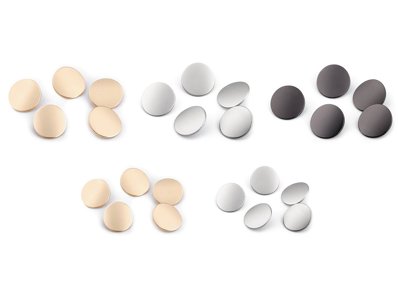 Matné kovové gombíky so spodným prišívaním využijete na saká, kabátiky, svetre a pod. Sú tenké a majú nízku hmotnosť.