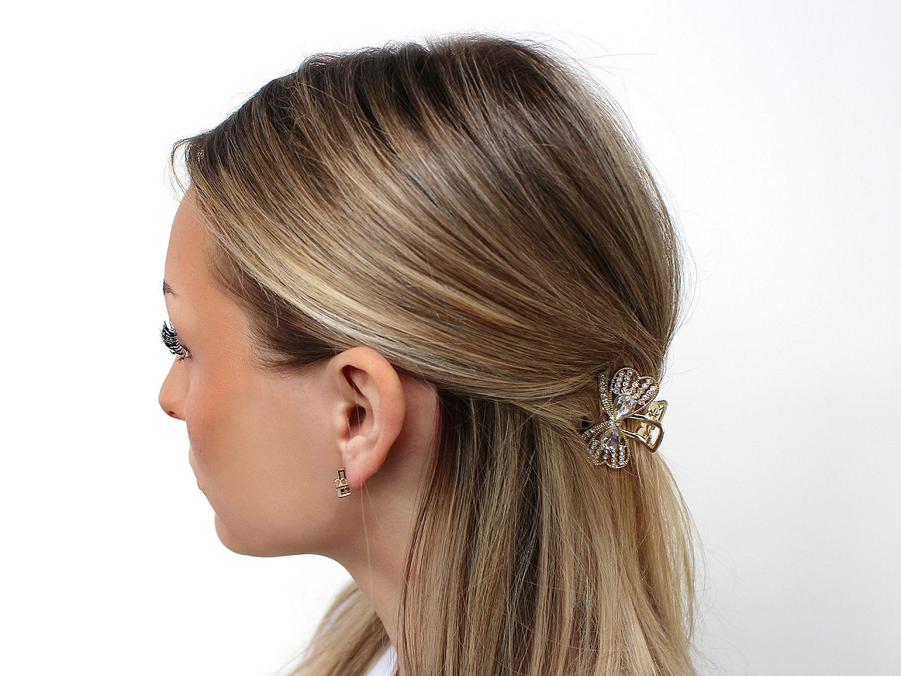 Kovový štipec do vlasov je bohato zdobený trblietavými brúsenými kamienkami , vďaka ktorým je neprehliadnuteľný. Vytvorí slávnostný účes počas chvíľky a zaistí, že budete žiariť pri každej príležitosti. Je perfektnou voľbou pre svadby, večierky či pracovné schôdzky, kde chcete vyzerať upravene a elegantne. Je veľmi kvalitný, drží presne na mieste vďaka svojmu silnému stlačeniu a dlhým zubom.