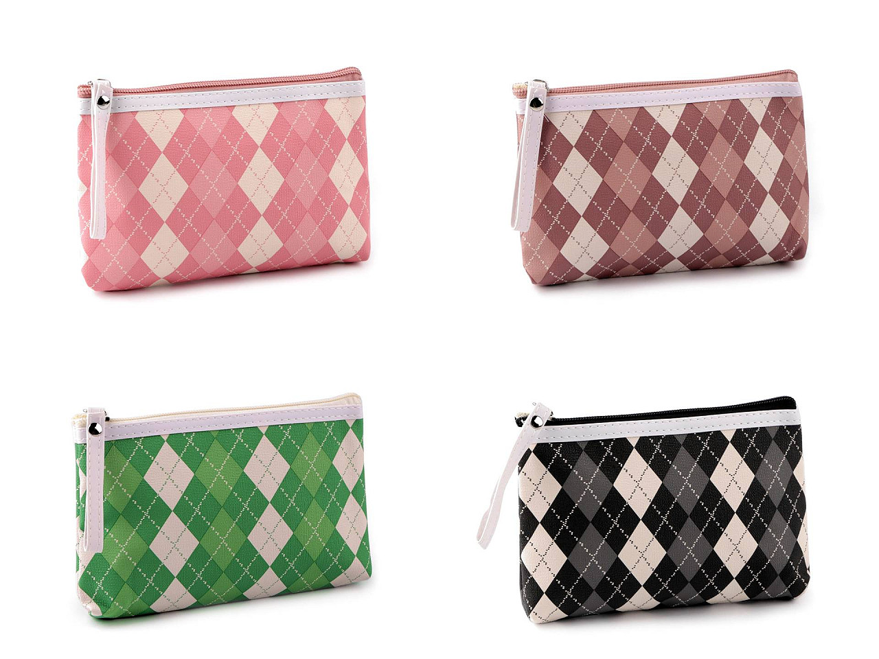 Puzdro na kozmetiku a drobnosti využijete doma aj na cestách. Horný umývateľný poťah má károvanú potlač . Puzdro je dostatočne pevné a priestranné , okrem kozmetiky sa do neho zmestí aj všetko potrebné napr. mobil, písacie potreby, okuliare a pod. Praktické pútko uľahčuje manipuláciu s puzdrom a jeho prenášanie. Zapína sa na zips, horný okraj je spevnený polyuretánovým pruhom.