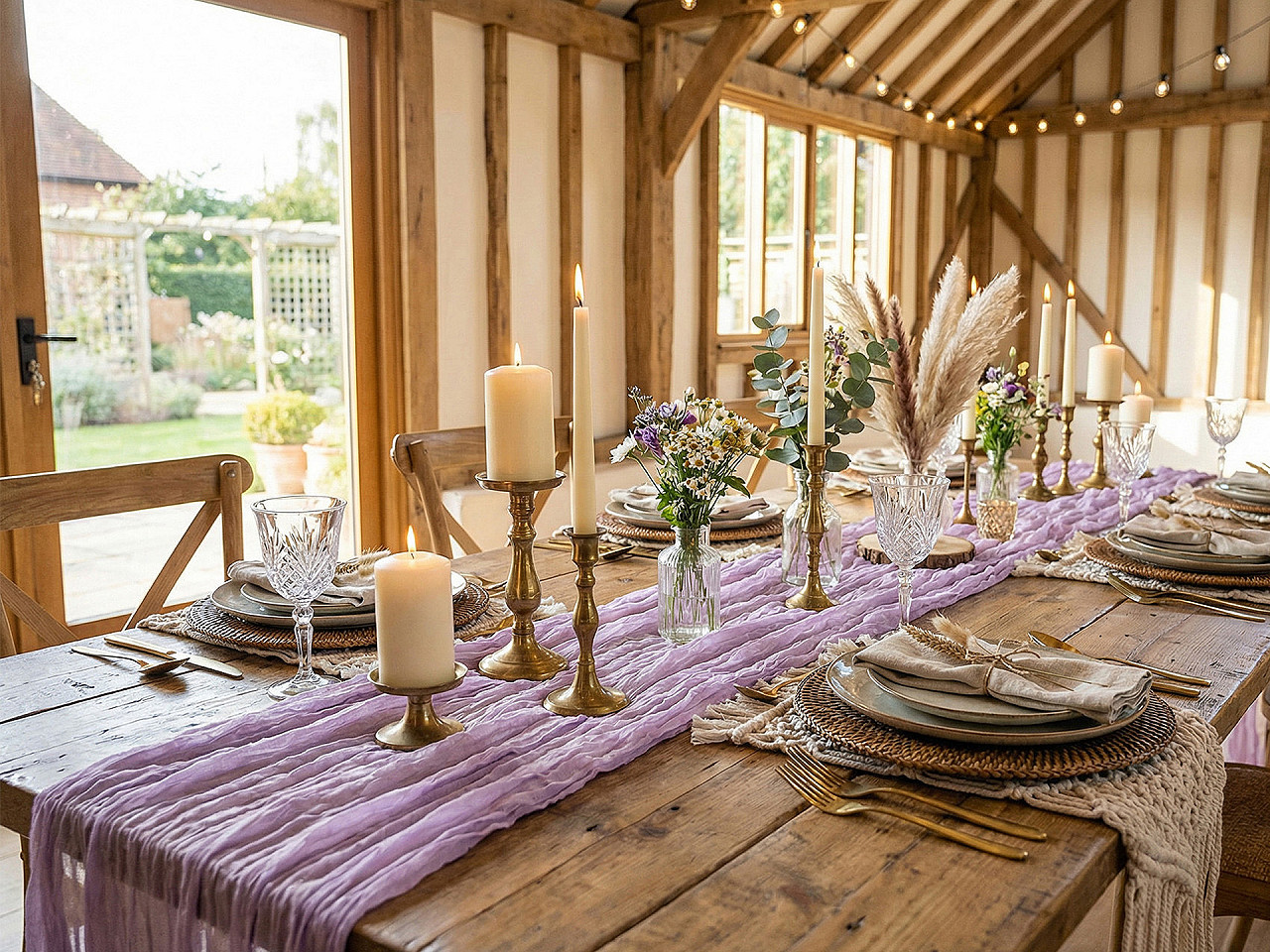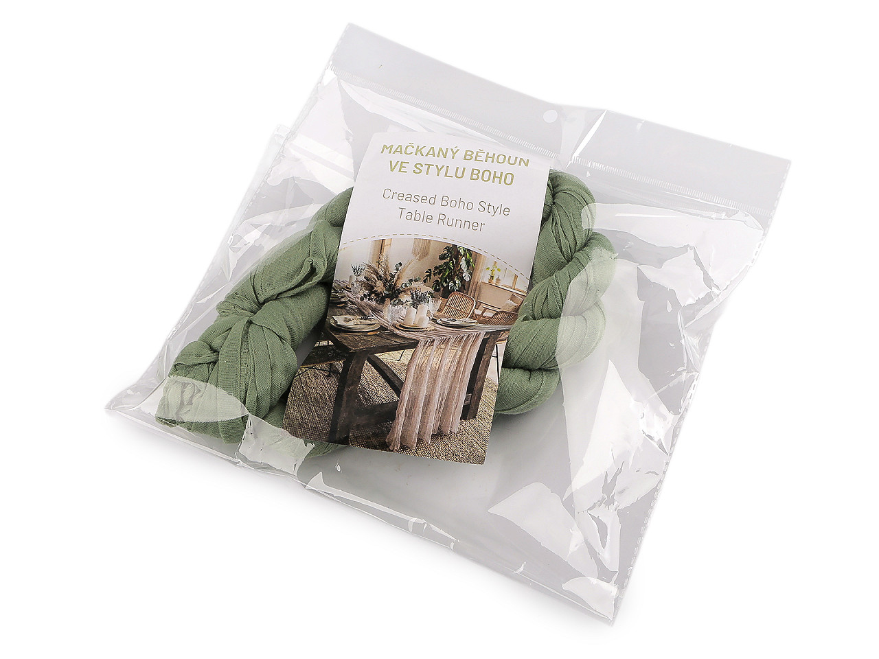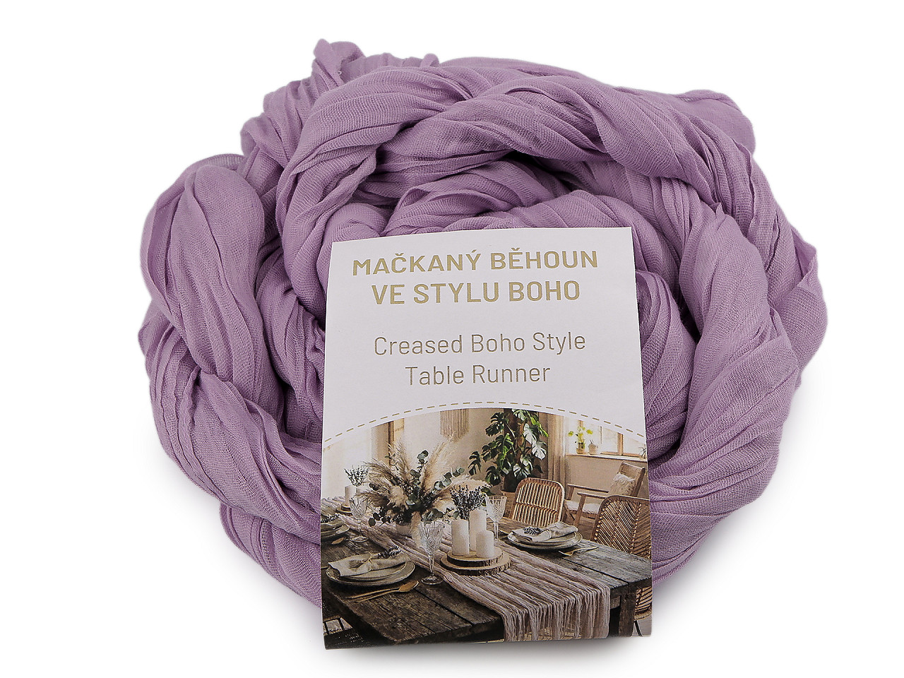 Slávnostný krčený behúň v štýle boho je elegantnou dekoráciou, ktorá poslúži na ozdobenie stredovej časti stola. Jeho jednoduchý vzhľad a priesvitný materiál, v kombinácii s prírodnými tónmi, dokonale zapadne do atmosféry boho štýlu. Kvalitný materiál zaisťuje príjemnú textúru a vzhľad, ktorý pôsobí ľahko a vzdušne . Využijete ho na rôznych oslavách a svadbách, ktorým dodá harmonickú atmosféru. Môže byť aj ozdobou pre predsvadobnú hostinu, recepciu, párty či iné typy osláv, kde chcete vytvoriť nezabudnuteľnú atmosféru.