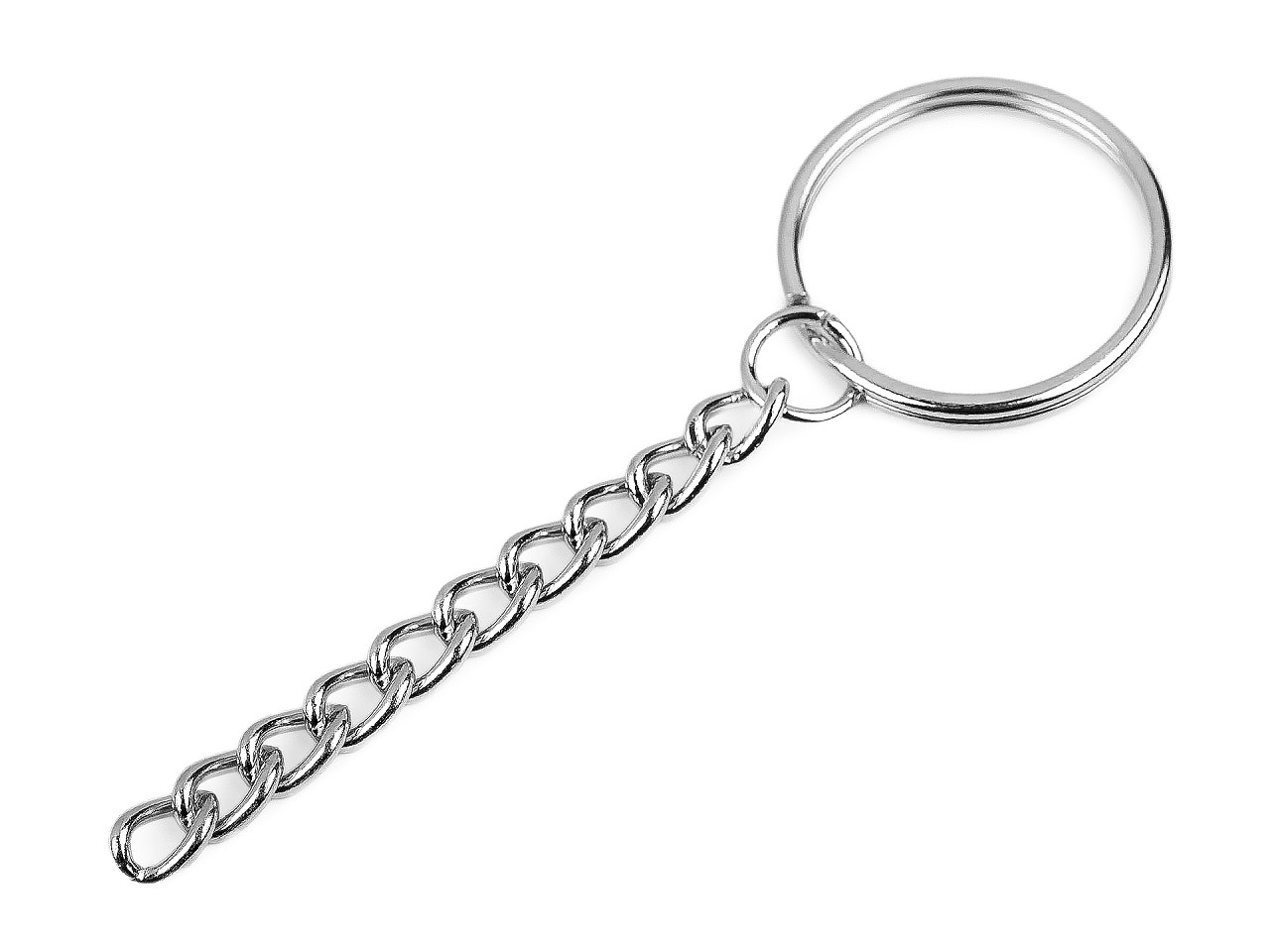 Kovový krúžok s retiazkou využijete ako kľúčenku alebo ozdobu na kabelky. Na koniec retiazky môžete pripevniť karabínku alebo nejaký zaujímavý prívesok . Priemer malého otváracieho krúžku na konci retiazky je 8 mm.