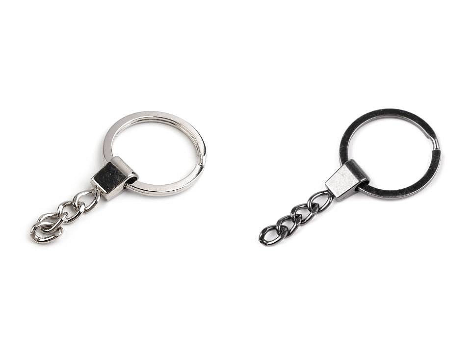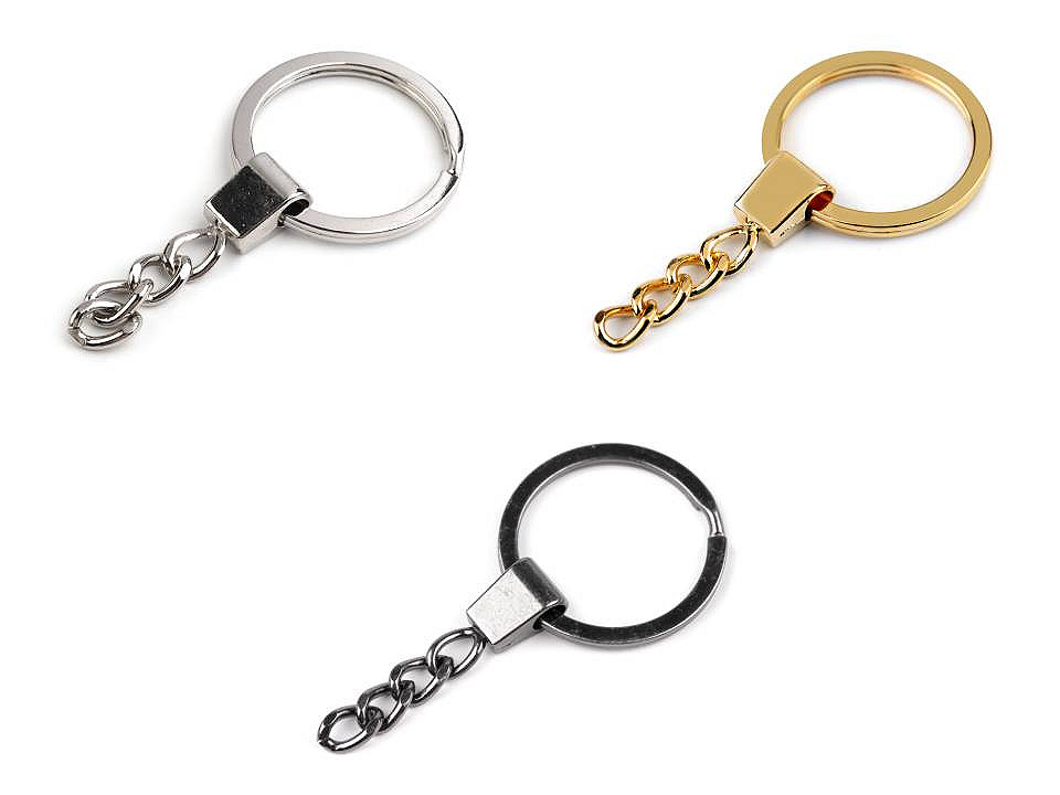 Kovový krúžok využijete na kľúče alebo rôzne prívesky. Je k nemu pripevnená retiazka (dlhá 37 mm), na ktorej koniec môžete pripnúť karabinku.