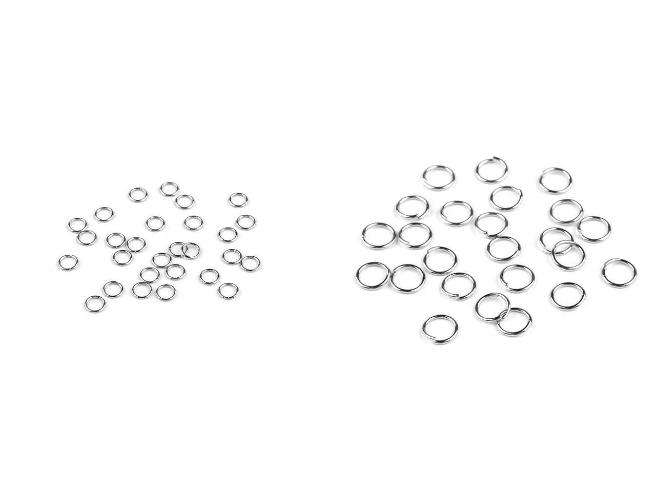 Spojovacie krúžky sú nepostrádateľnou súčasťou mnohých šperkov. Ponúkame vám kvalitné krúžky z nerezovej ocele . Používajú sa na ketlovanie, spojenie dvoch častí šperku, na prichytenie rôznych ozdôb na retiazky a pod. Krúžky sú uzavreté, ale dajú sa roztvoriť a opäť zavrieť. V balení 10 g je cca 150 ks krúžkov s Ø6 mm. Ø drôtu majú 0,7 mm. V balení 10 g je cca 95 ks krúžkov s Ø7 mm. Ø drôtu majú 0,9 mm. V balení 10 g je cca 65 ks krúžkov s Ø9 mm. Ø drôtu majú 1 mm. V balení 10 g je cca 42 ks krúžkov s Ø10 mm. Ø drôtu majú 1,2 mm.