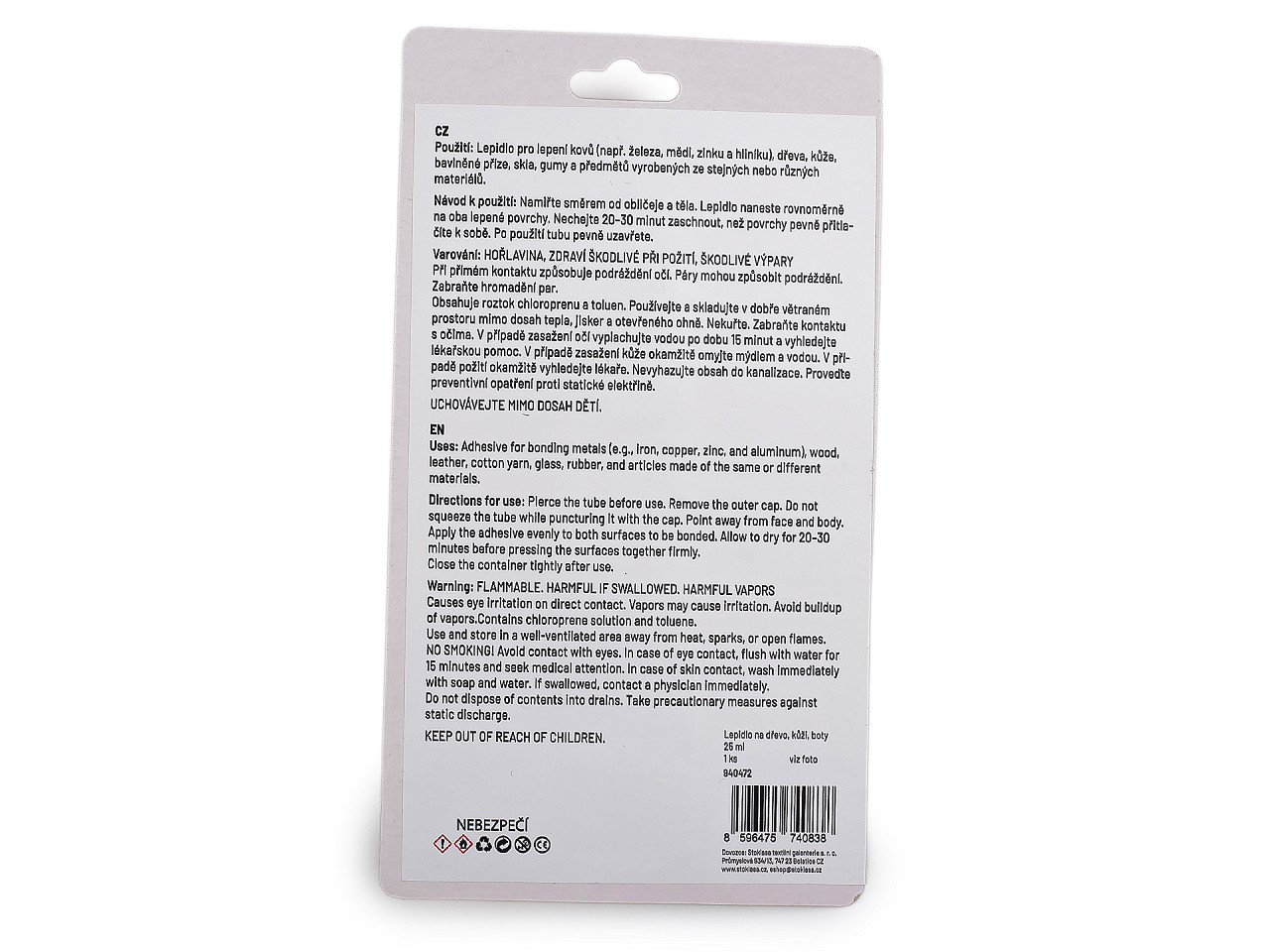Super silné lepidlo v tube je určené na lepenie kovov (napr. železa, medi, zinku a hliníka), dreva, kože, bavlnenej priadze, skla a gumy . Je vynikajúce na renovácie obuvi . Návod na použitie: naneste lepidlo rovnomerne na oba povrchy. Nechajte ho 20 – 30 minút zaschnúť, kým povrchy pevne pritlačíte k sebe. Po použití nezabudnite tubu uzavrieť.