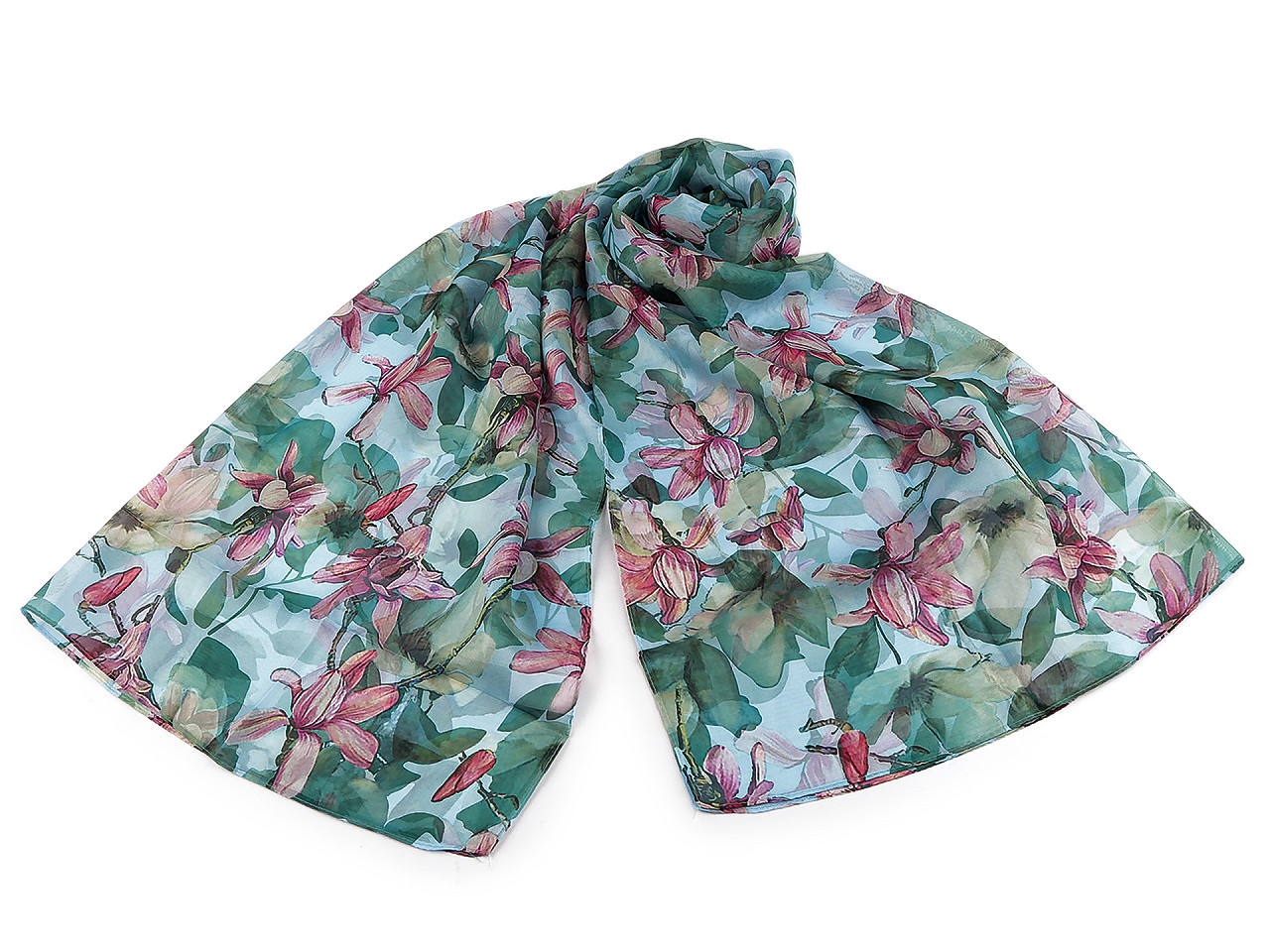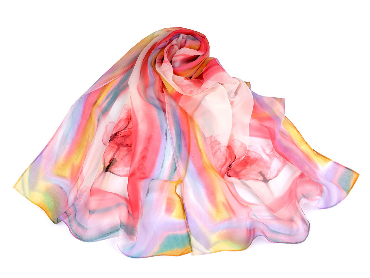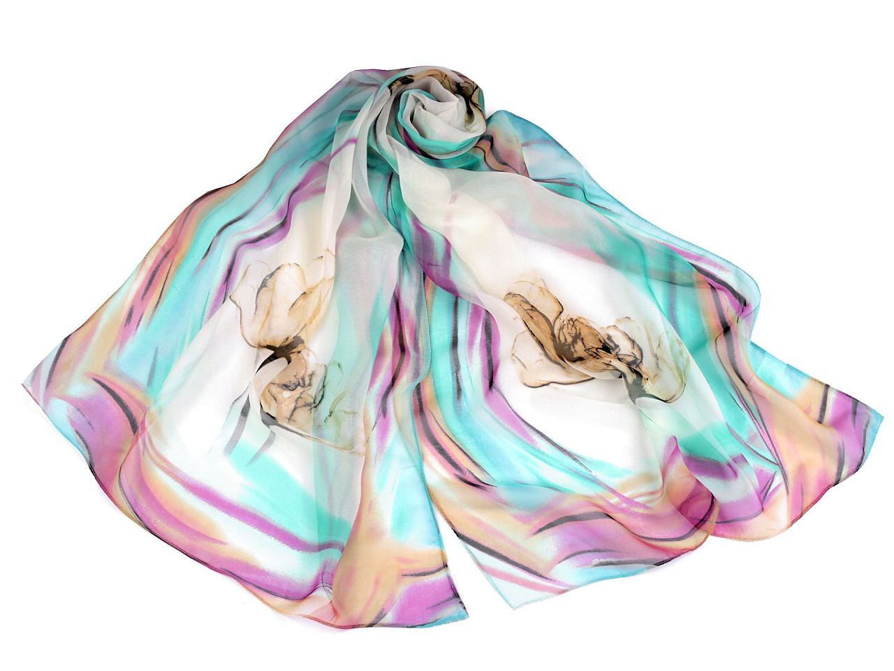 Šatka s farebnou potlačou kvetov je vzdušná, ľahučká ako pierko a príjemná na dotyk. Doladí vám outfit, či už si vezmete sako, blúzku, svetrík alebo šaty. Šatky majú zlé štítky, skutočné zloženie je 100% polyester. Ospravedlňujeme sa za toto nedopatrenie a ďakujeme za pochopenie.