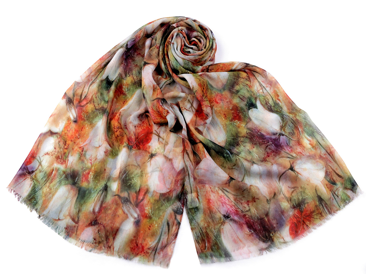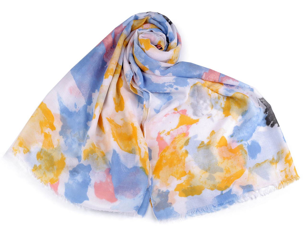Pestrofarebný šál je ľahučký a mäkký, vyrobený z príjemného materiálu. Využijete ho do spoločnosti aj na všedné nosenie k blúzke, svetríku, šatám, ale aj sakám alebo kabátom. Na koncoch má jemné krátke strapce. Niektoré šály majú zlé štítky, skutočné zloženie je polyester. Ospravedlňujeme sa za toto nedopatrenie a ďakujeme za pochopenie.