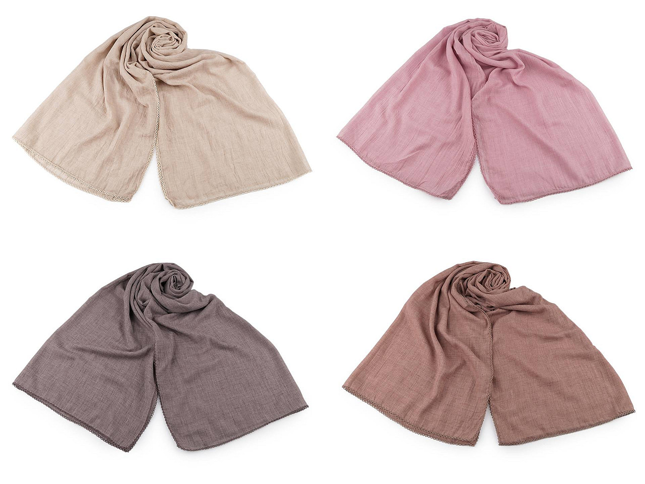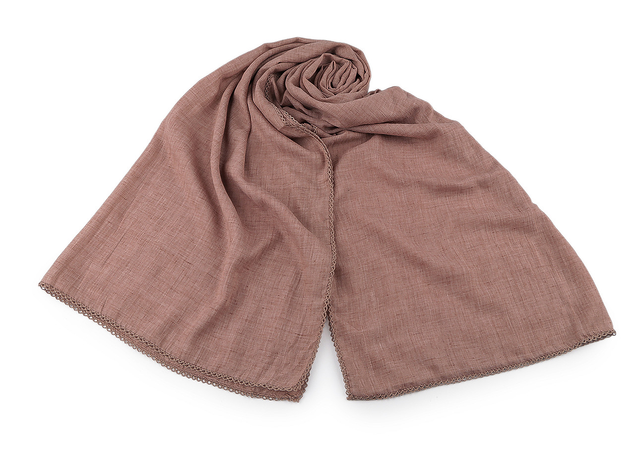 Vzdušná bavlnená šatka s ozdobným lemom bude elegantným doplnkom pre každú príležitosť. Ľahko presvitá. Doladí váš outfit, či už si vezmete sako, blúzku, svetrík alebo šaty. Šatky môžu mať zlé štítky, skutočné zloženie šatky je bavlna, čipka je polyesterová.